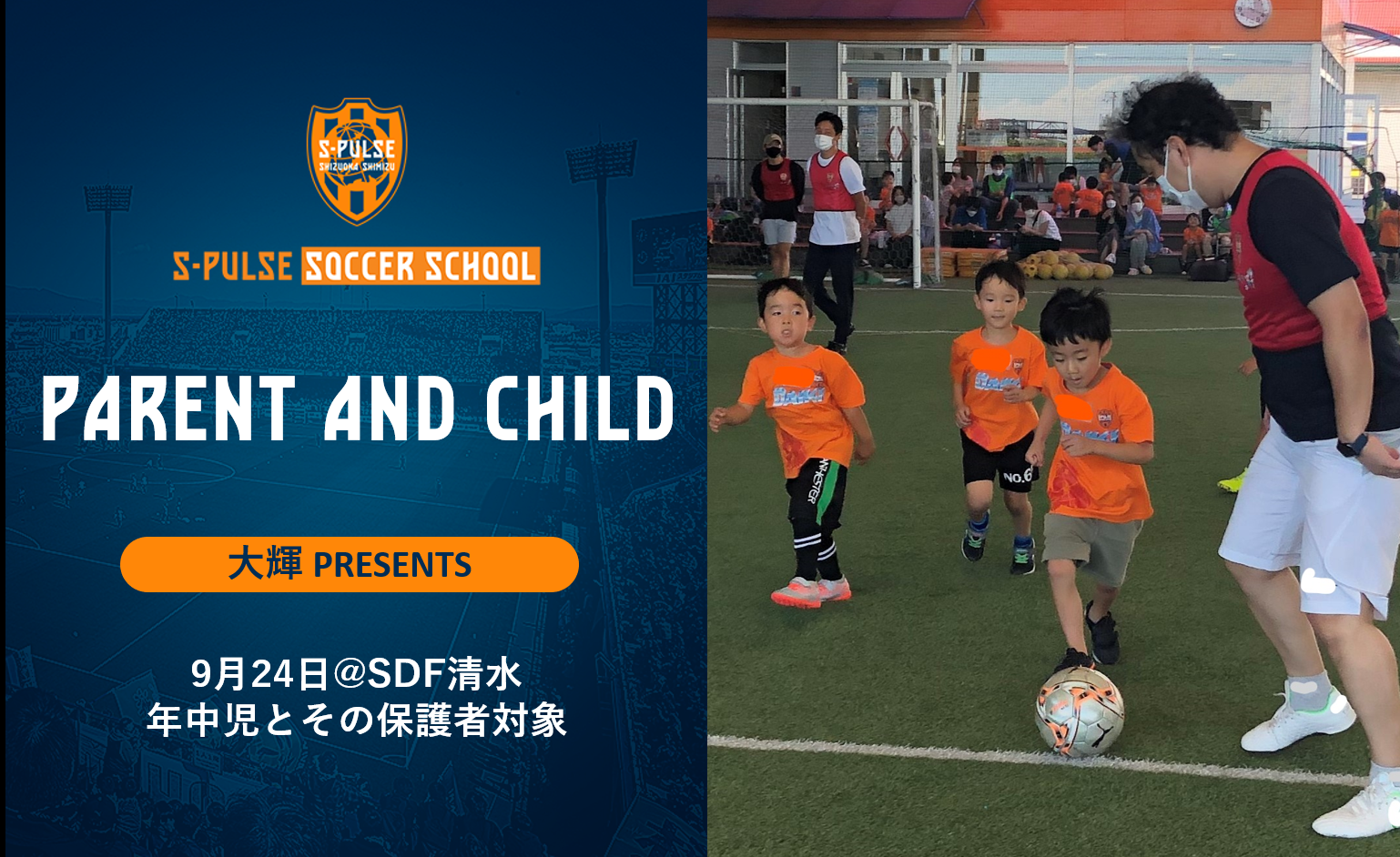 清水エスパルスは、地域事業パートナー大輝さまご協力のもと、9月24日(日)にエスパルスドリームフィールド清水にて、年中児のお子様1名と保護者1名の親子を対象とした『大輝presents年中さん親子サッカー教室』を開催いたします。