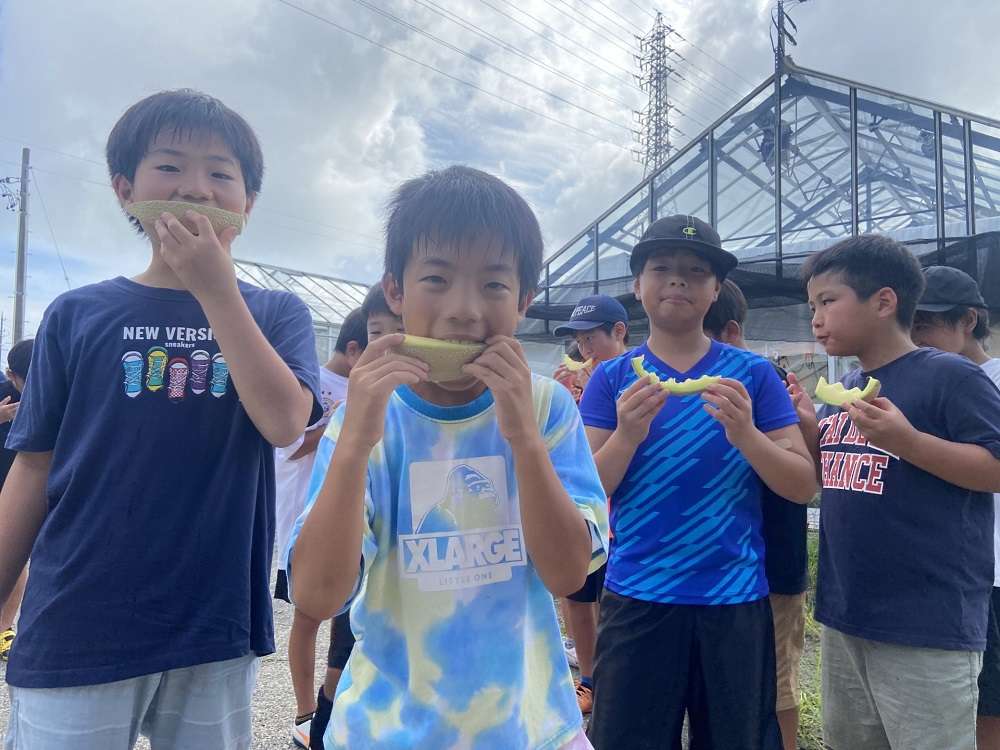 そして、お手伝いした後はメロンが登場!1口食べた子どもたちは「おいしい!」「何個でも食べられる!」と大興奮でした。