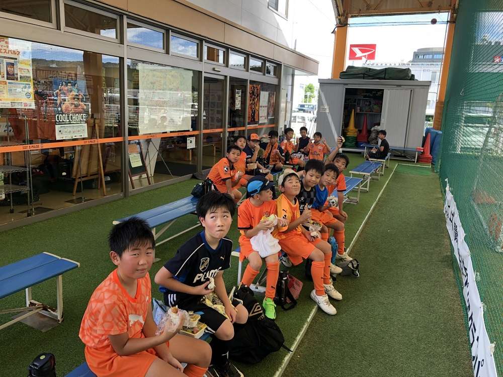 トレーニングが終了し、みんなで昼食!保護者の皆さんが作ってくれたお弁当やおにぎりを食べてさらにエネルギーを蓄えました。