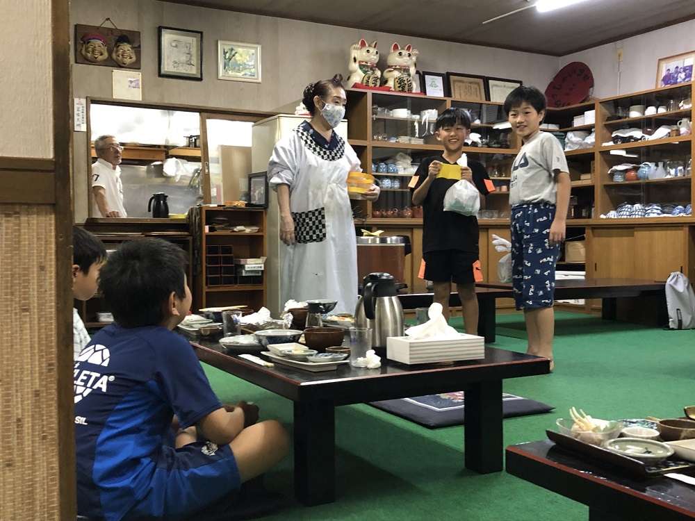 交流戦後、きらく旅館へ移動しお風呂を済ませ夕食の時間。