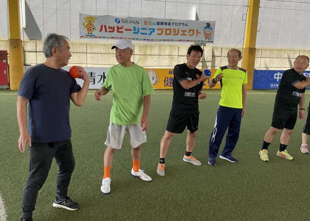 ハッピーシニアプロジェクトは、県内5か所のエスパルスドリームフィールドで開催しています。60歳以上の皆様に向けて、心身の健康と頭の活性化及び”楽しい”コミュニティーの場をご用意し、生涯現役で楽しく生活していけることを目的とした様々な運動プログラムを提供する活動です。