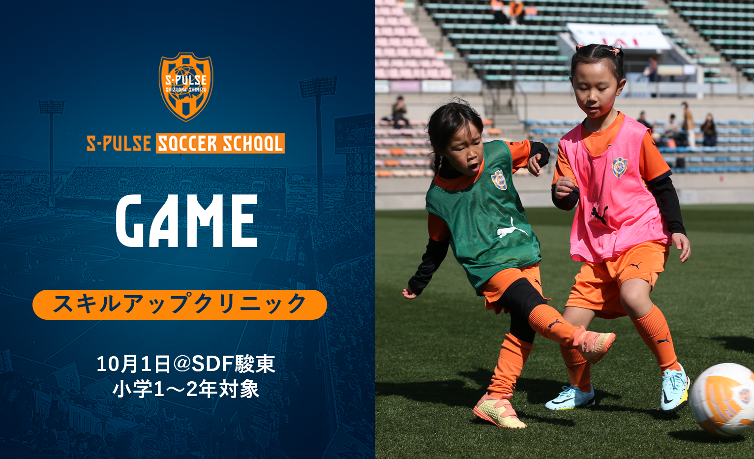 エスパルスサッカースクールでは、10月1日(日)にエスパルスドリームフィールド駿東にて、小学校1,2年生を対象とした『スキルアップクリニック GAME編~試合で活躍するためのコツを学ぼう~』を開催いたします。