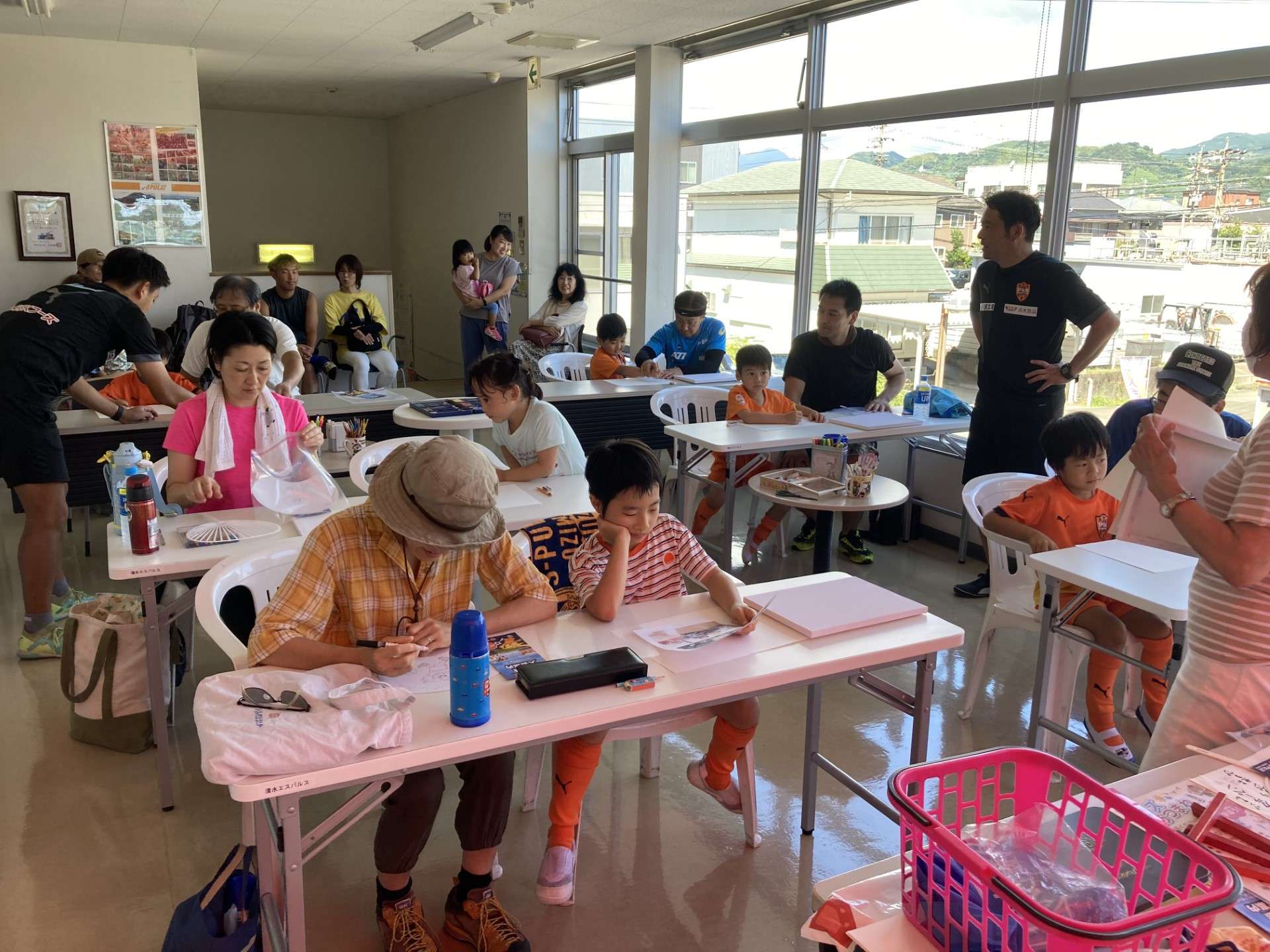 サッカー教室のあとは敬老の日の似顔絵のプレゼント作りを行いました。