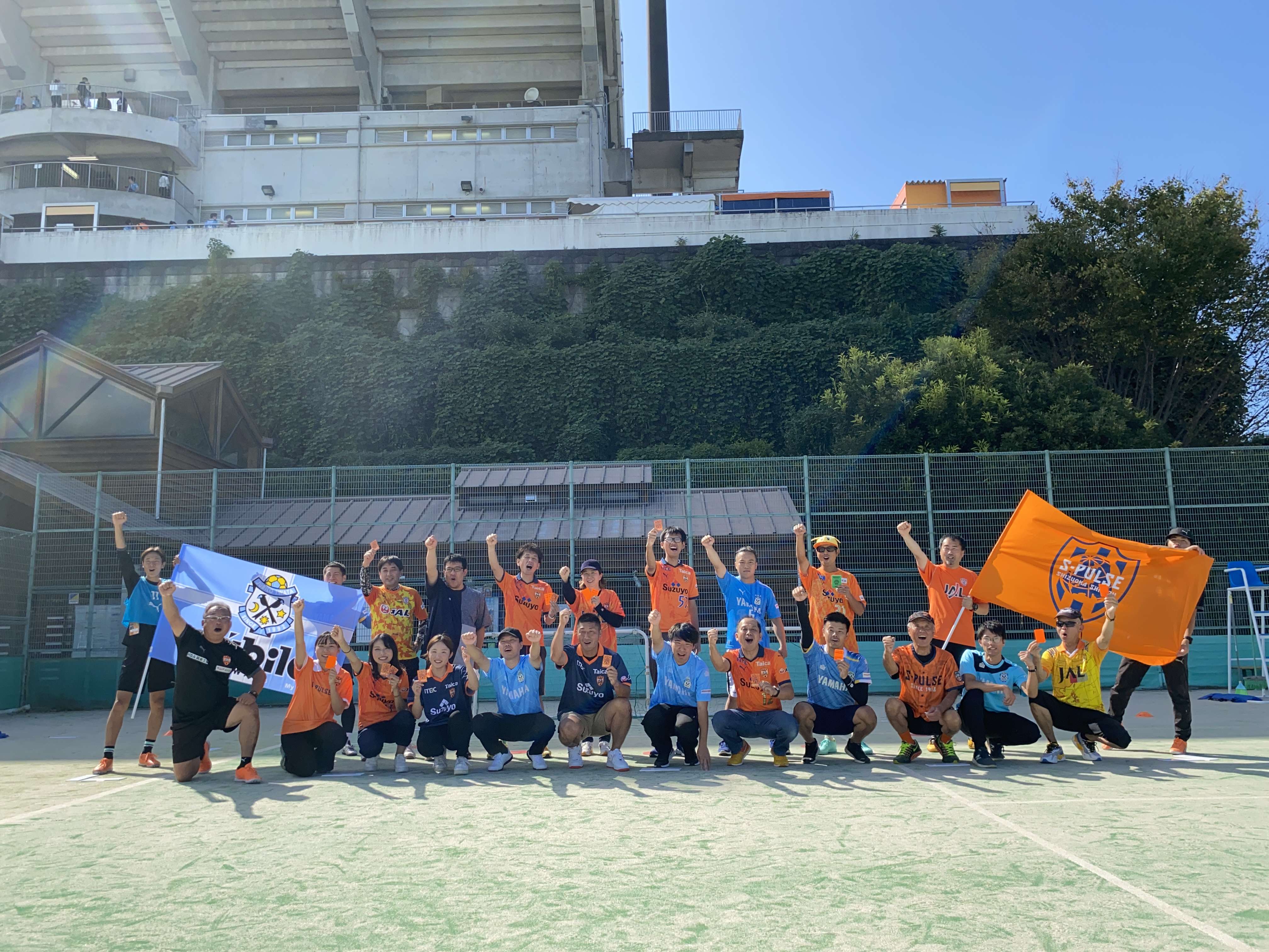 10月7日(土)明治安田生命J2リーグ第37節「エスパルスvsジュビロ」の試合前、IAIスタジアム日本平(テニスコート)にて、『エスパルス&ジュビロ ウォーキングフットボール交流戦』を開催し、清水エスパルス&ジュビロ磐田の両サポーター20名の方にご参加いただきました。