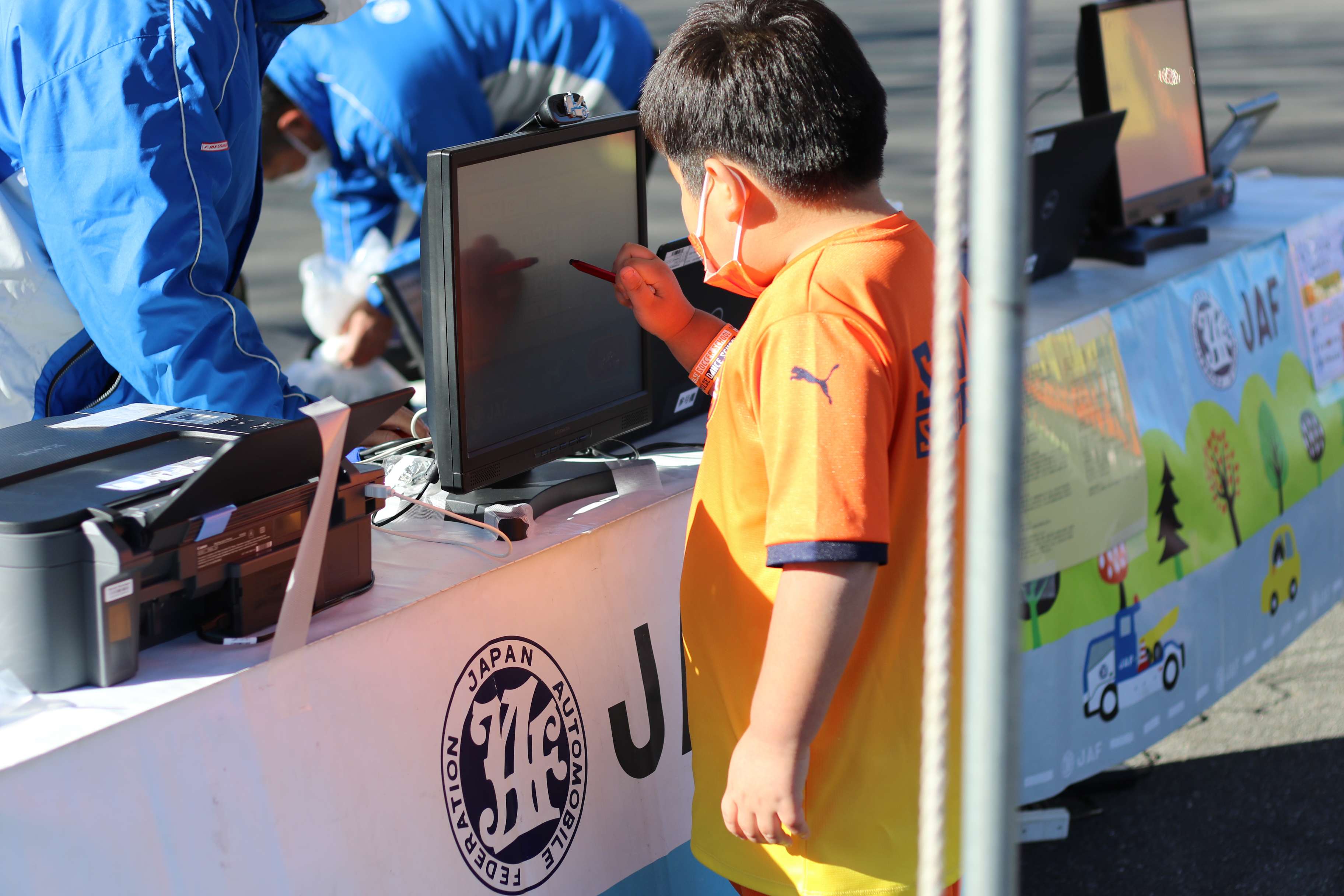 タッチパネルで名前を登録し、交通安全クイズに挑戦すると、顔写真入りの免許証型のカードがもらえます。
