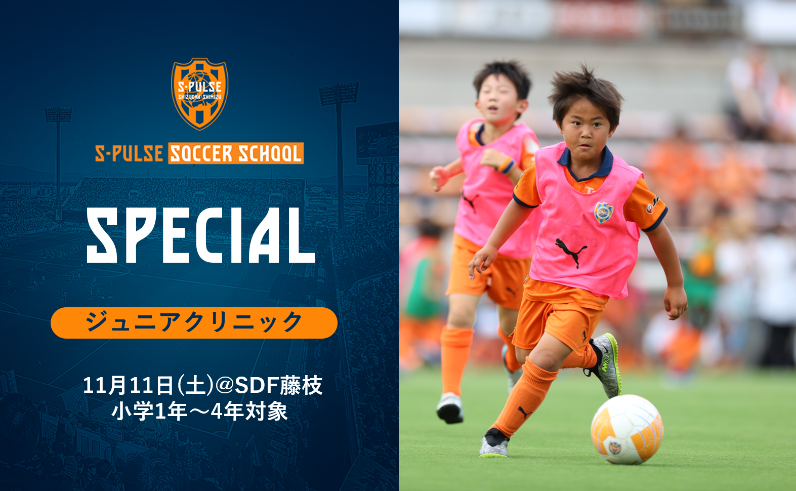 清水エスパルスは、11月11日(土)にエスパルスドリームフィールド藤枝にて、1年生から4年生を対象とした『第7回ジュニアクリニック』を開催いたします。