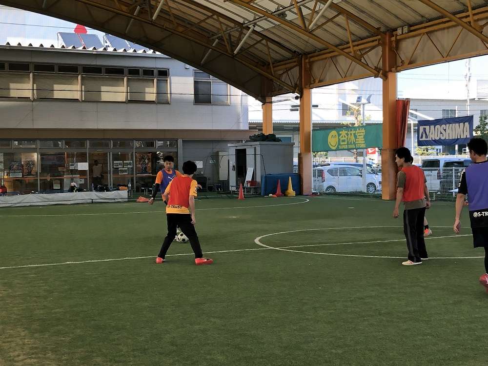 その後のパス&コントロールのトレーニングではディフェンスの外し方や体の向き、目線を意識して行いました。