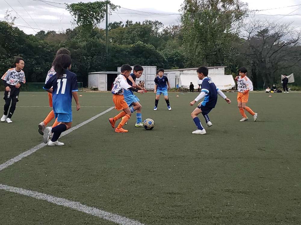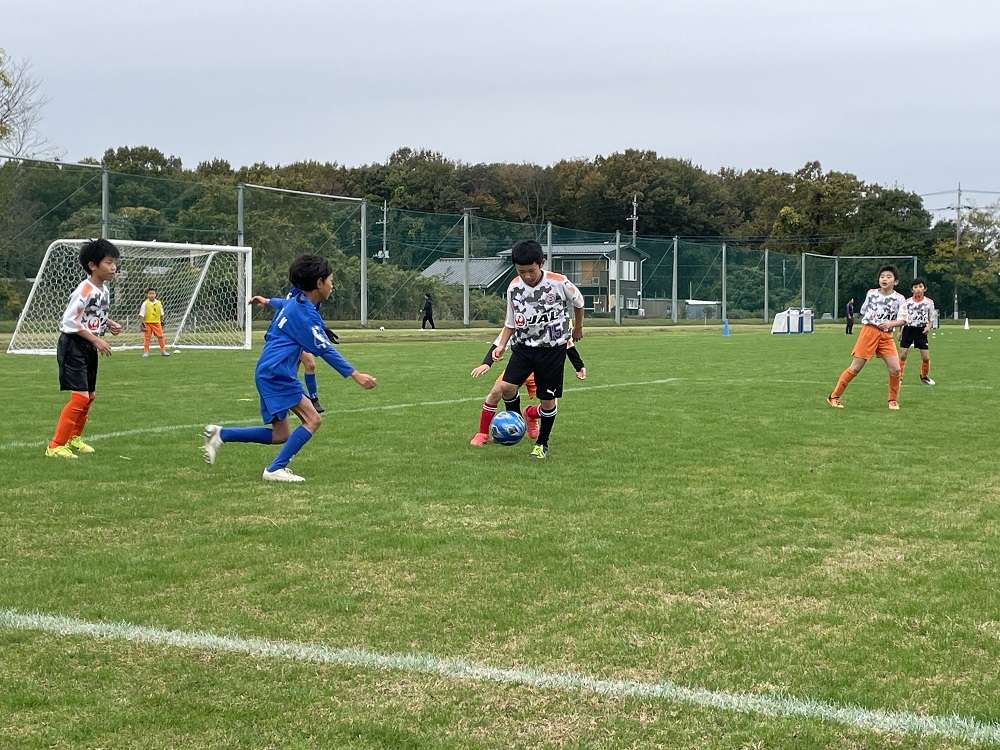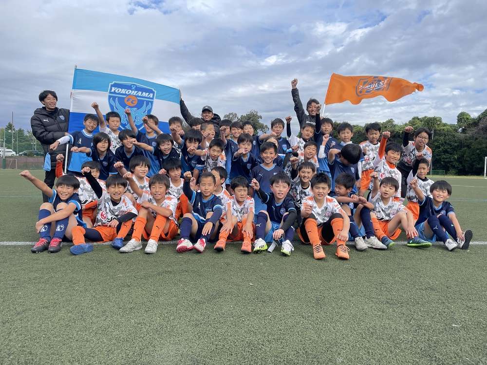 横浜FCスクール生との交流戦会場に到着。入念なミーティング後、いよいよキックオフ!!