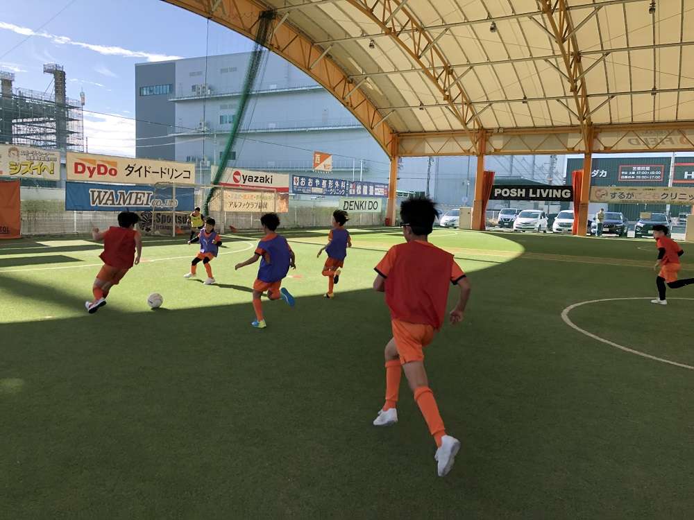 普段、スクールで試合を行っているフットサルコートのサイズとは遥かに異なり、子どもたちはワクワクの表情でコーチのルール説明を聞いていました。