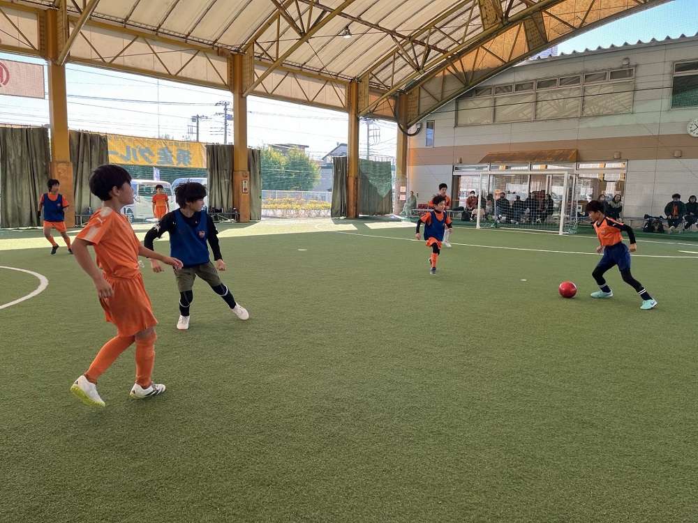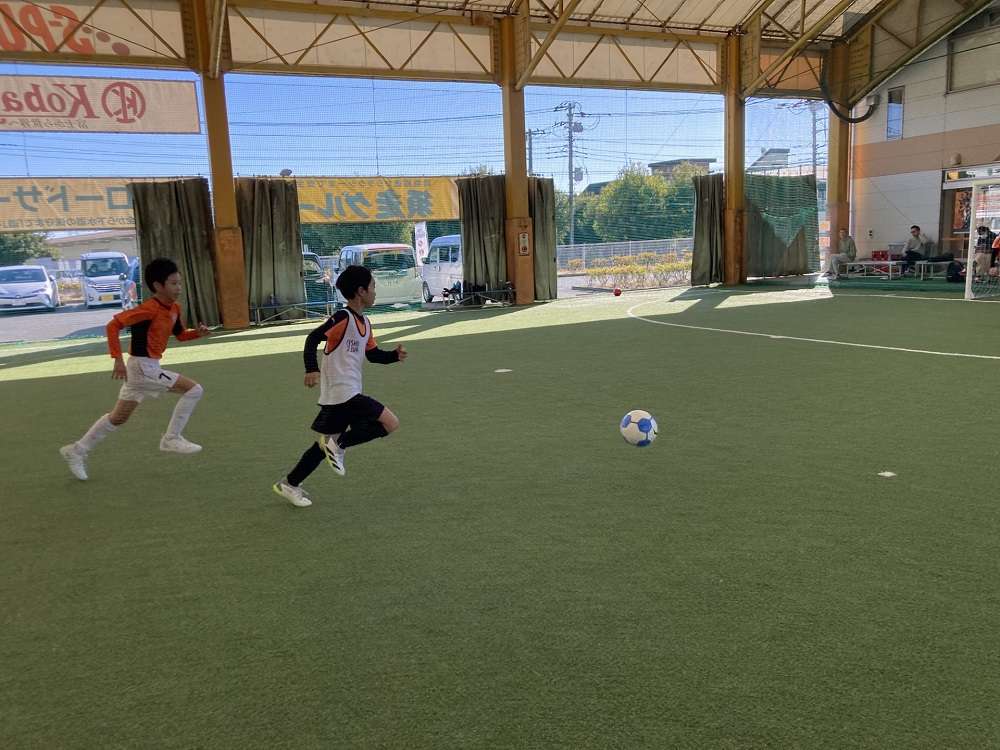 試合ではトレーニングやったことを意識し1対1ではドリブルで仕掛けることや、仕掛けるふりをして仲間にパスなど「2つの選択肢」を持ちながらプレーしていました。