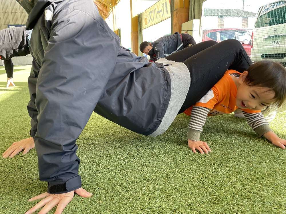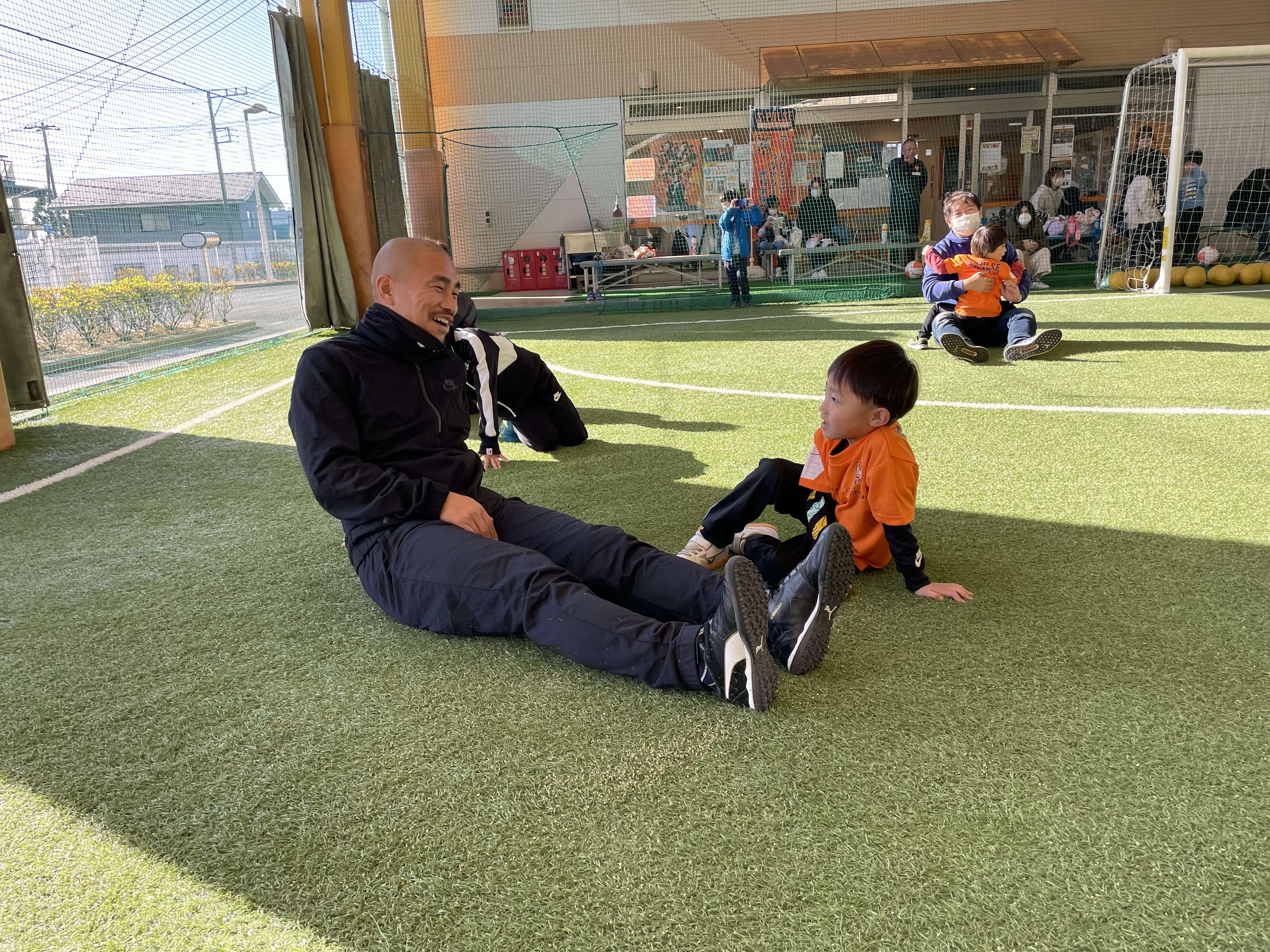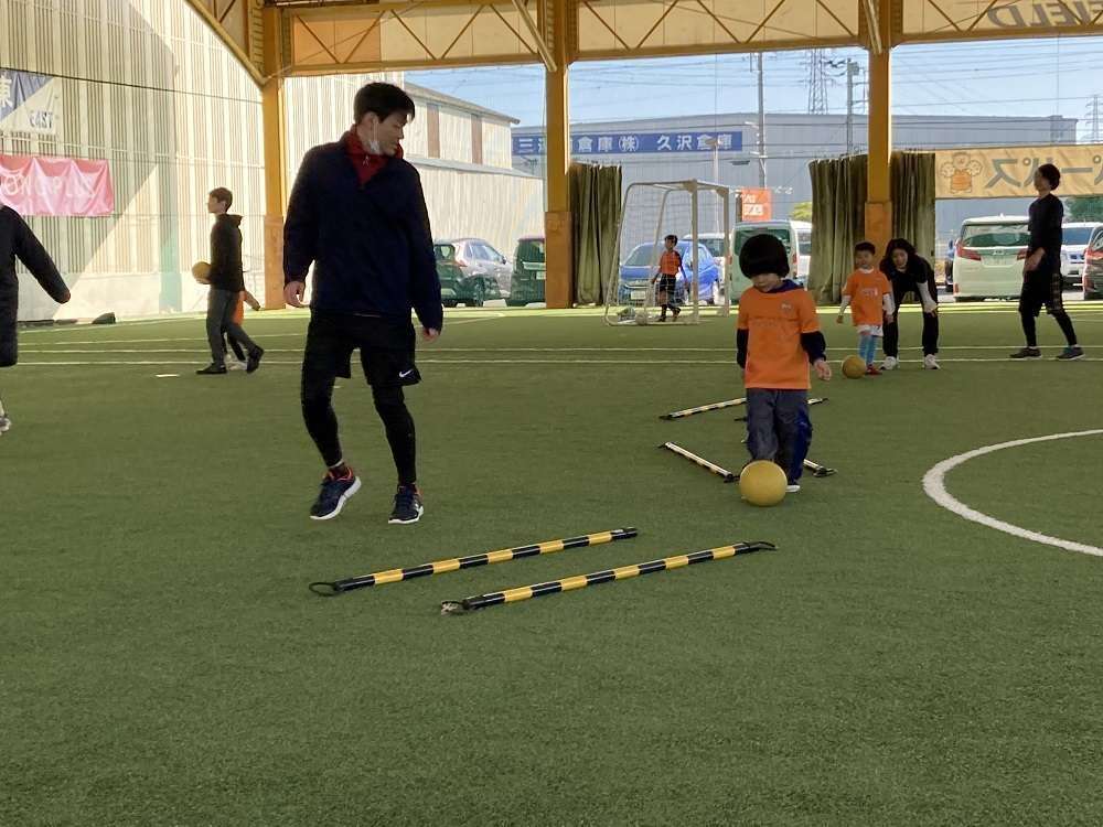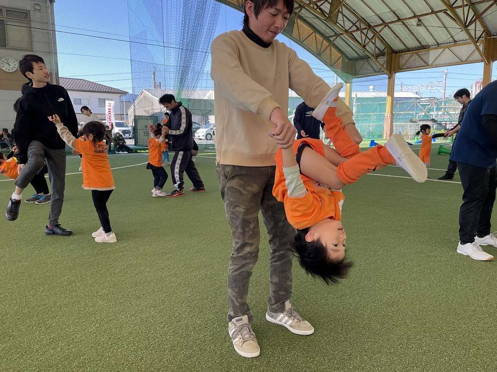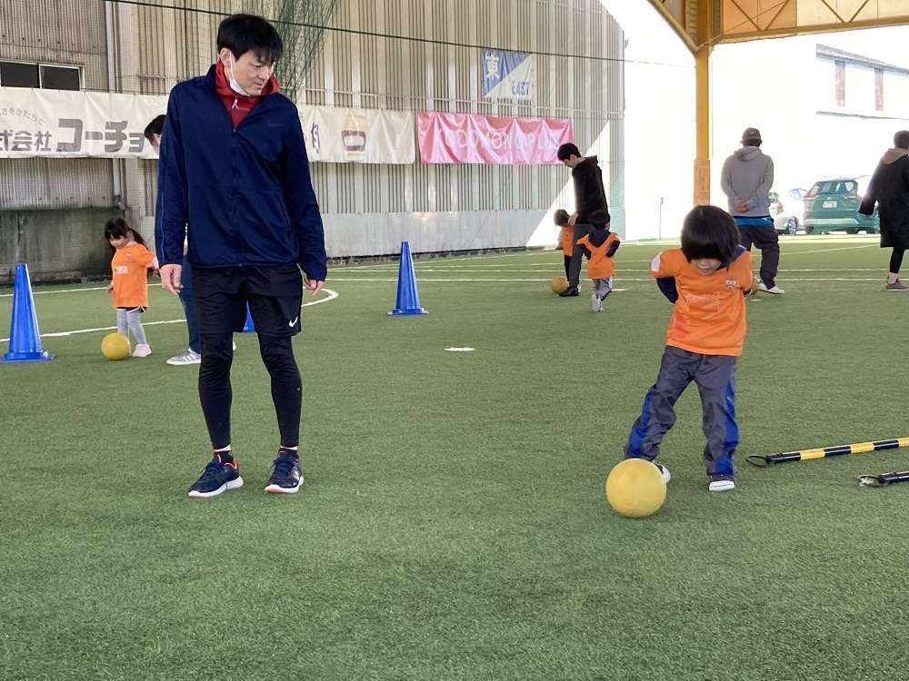 親子で行う体操や動きづくりに始まり、親子で手を繋いでドリブルや、キックでパス、試合の前には様々シュートアトラクションを行い教室の最後には、試合を行い、終始笑顔あふれる教室となりました。