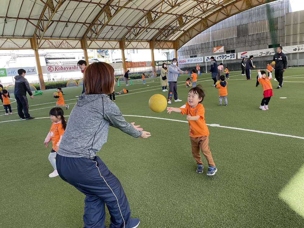 エスパルスドリームフィールド富士にて『Honda Cars 富士東 Presents親子で一緒に年少・年中さんサッカー教室』を開催し、富士・富士宮地域を中心とした、年少児・年中児の親子、27組にご参加いただきました。