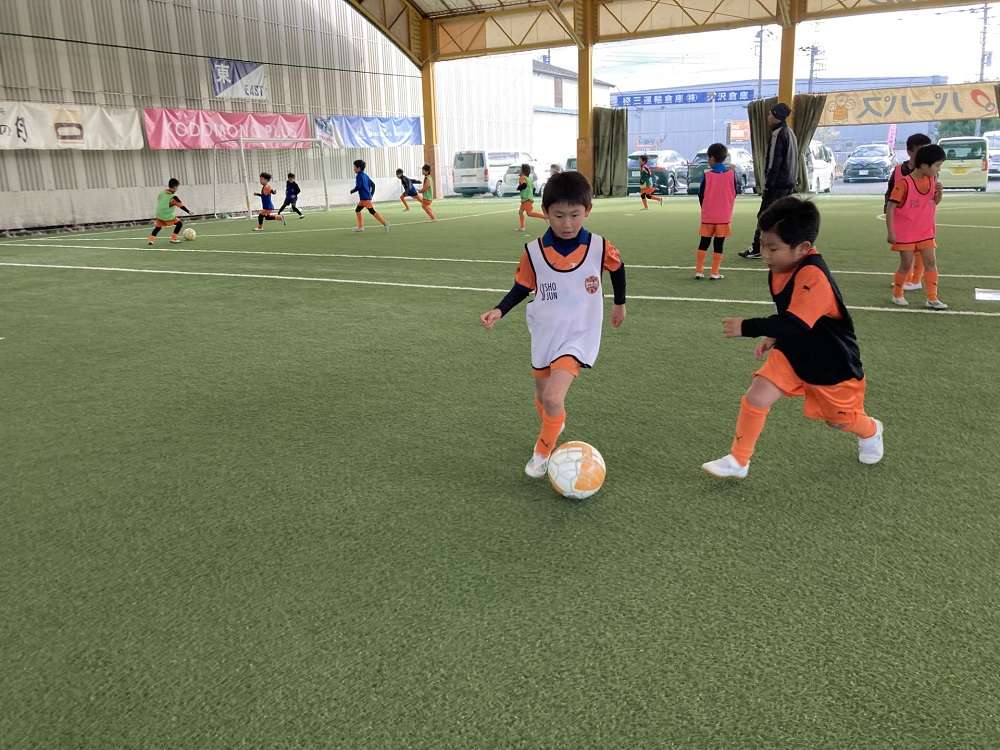年長~小学2年生は3チーム、小学3~6年生は5チームの1点交代の試合を行い、1点を取ると1P、チャンピオンは3Pに設定し、個人個人のポイントを競い合いました。