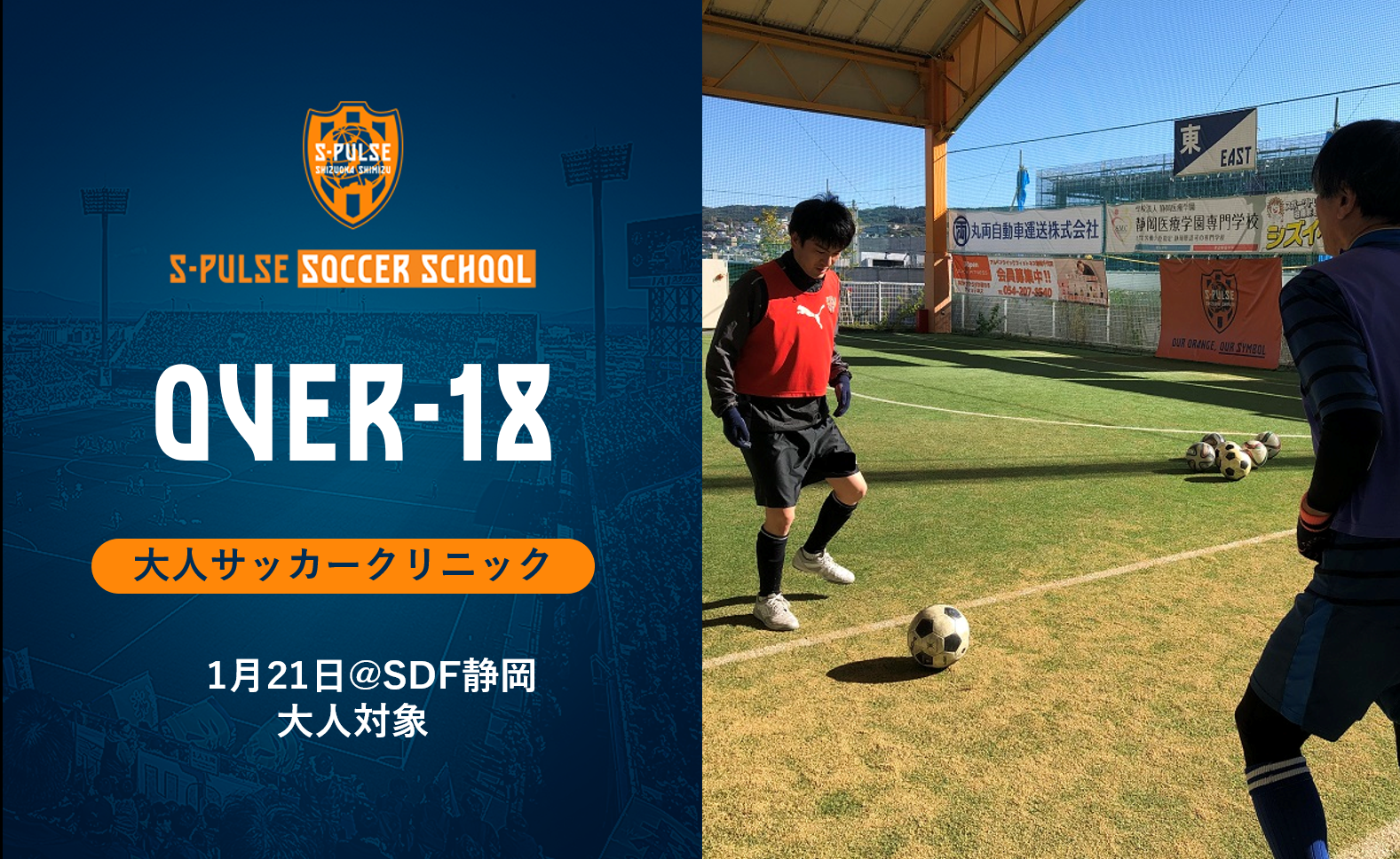 清水エスパルスは、1月21日(日)にエスパルスドリームフィールド静岡にて、18歳以上の男性・女性を対象に『大人対象 エスパルスサッカークリニック』を開催いたします。