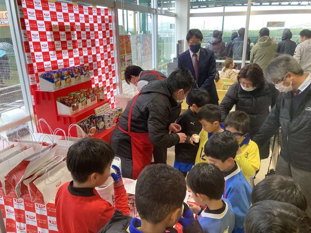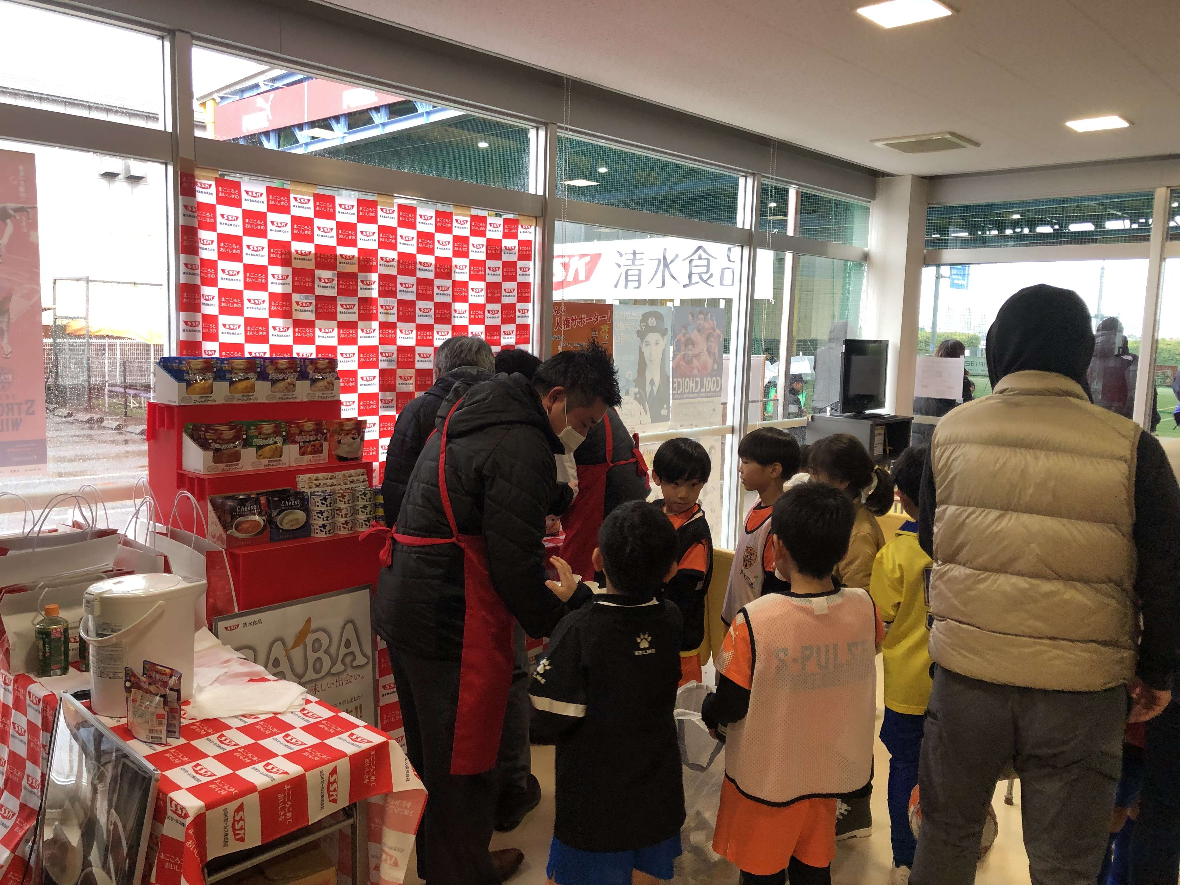 クラブハウスの中には、清水食品様のスープの試飲コーナーがあり、選手達は試合の合間にスープで身体を温めていました。保護者の方にもとても好評で「美味しい~」「身体が温まる~」と皆さんに喜んでいただきました!