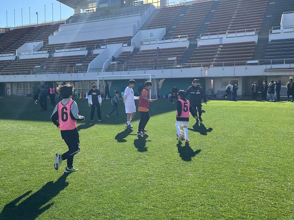 高学年は、なんとIAIスタジアムで2回目の試合をしました!2チームでの交流戦にはなりましたが、8対8の試合です!試合前から気合十分、チームでミーテイングをして試合にのぞみます。ドリブルやパスでゴールを目指し、身体をはってゴールを守ります。みんな練習成果を出そうと必死で戦ってくれました!