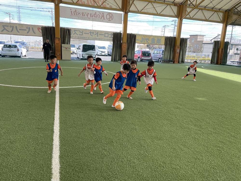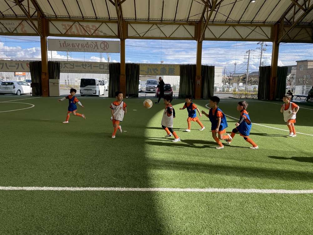 キッズクラスの子どもたちにとって、いつもより広いピッチ!GK!など初めての経験が満載!