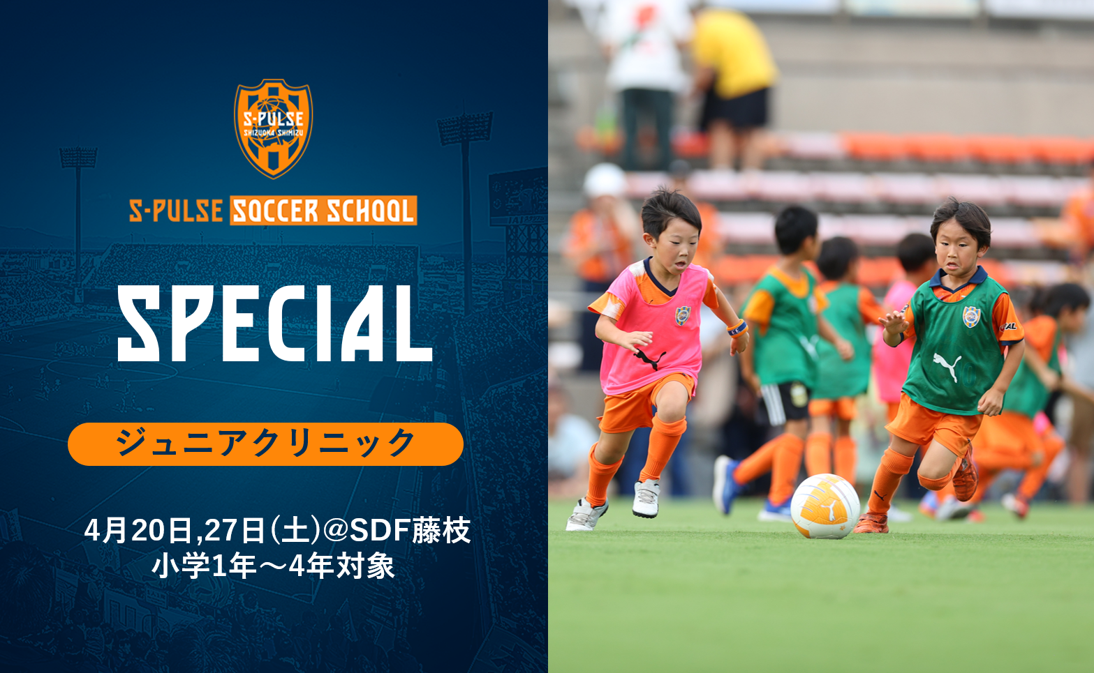清水エスパルスは、4月20日(土)にエスパルスドリームフィールド藤枝にて、1年生から4年生を対象とした『ジュニアクリニック~報われるまで努力し続ける~』を開催いたします。