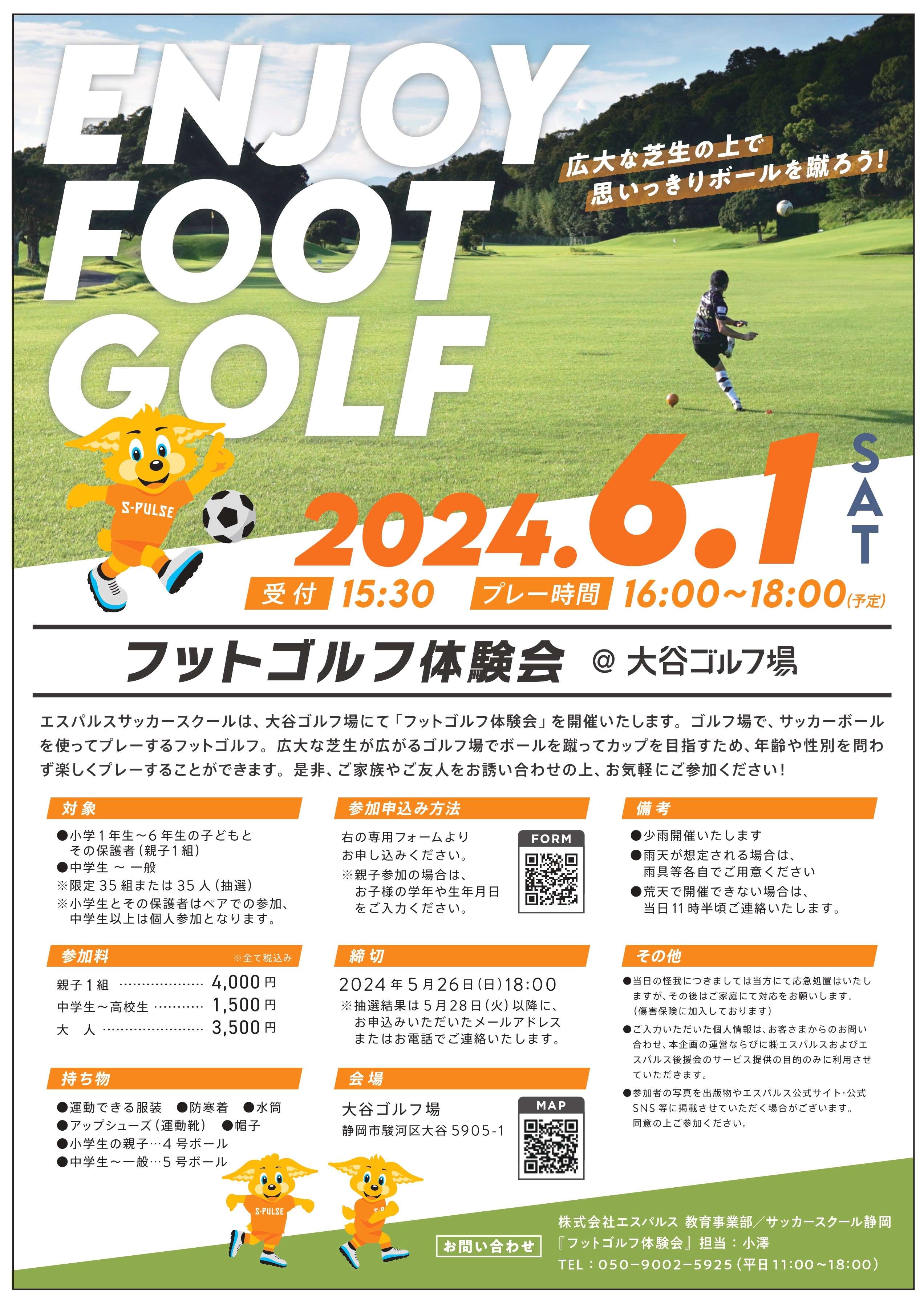 エスパルスサッカースクールは、大谷ゴルフ場にて「フットゴルフ体験会」を開催いたします。