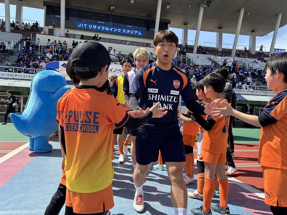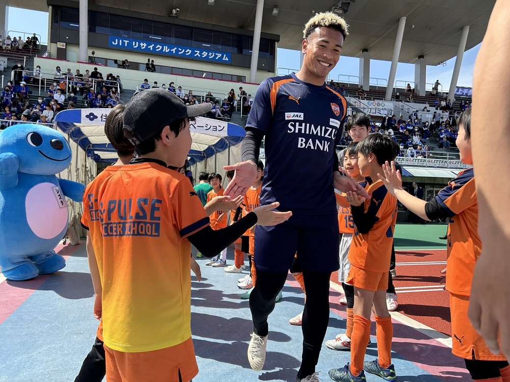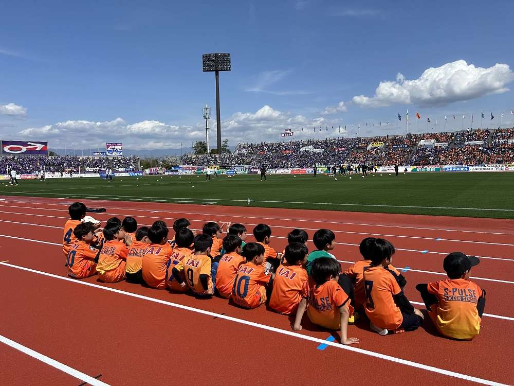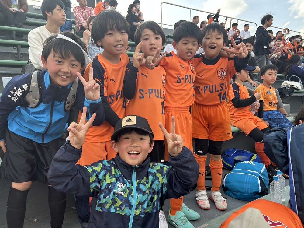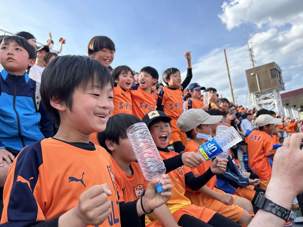 子どもたちはエスパルスのチャントに反応してリズムをとったり、大きな声で選手を鼓舞したりして選手、スタッフ、サポーター、そして子どもたちもONE FAMILY(ワンファミリー)で戦い、結果は住吉 ジェラニレショーン選手のゴールで劇的勝利!