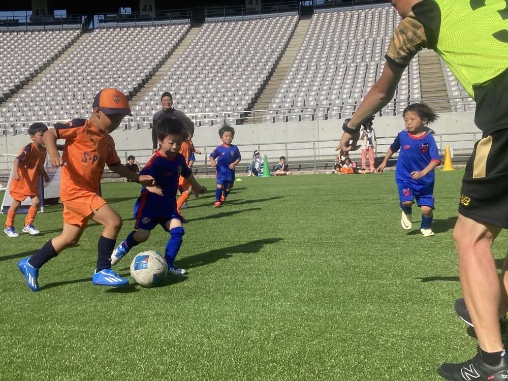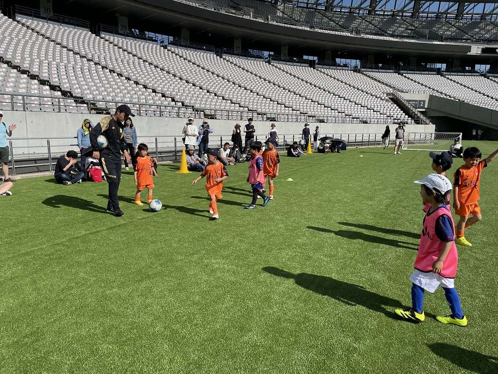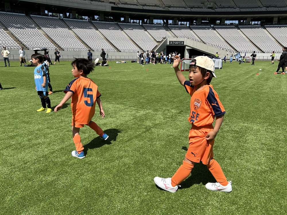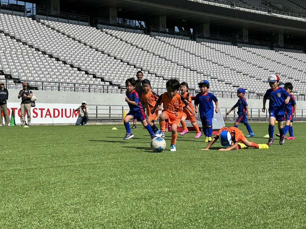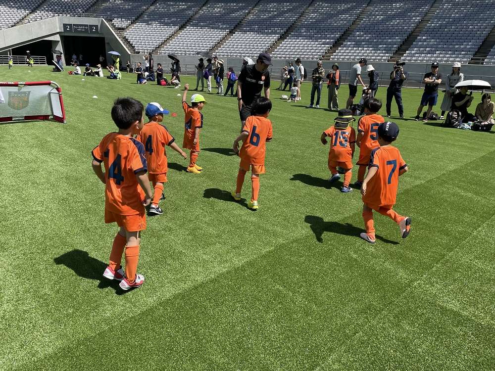 暑さに負けないくらい元気いっぱいの年長さんが、味の素スタジアムに集まりました。