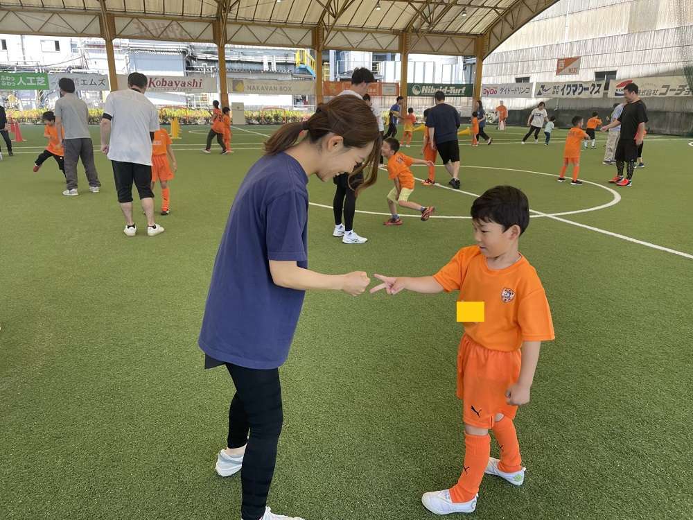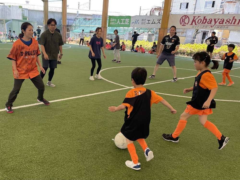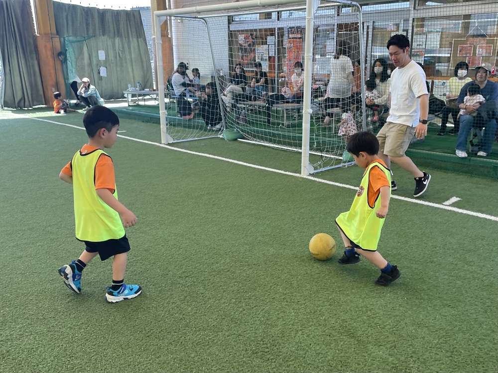 最後は、親子対決の試合。子どもたちが一生懸命プレーする姿が印象的でした。