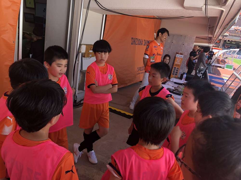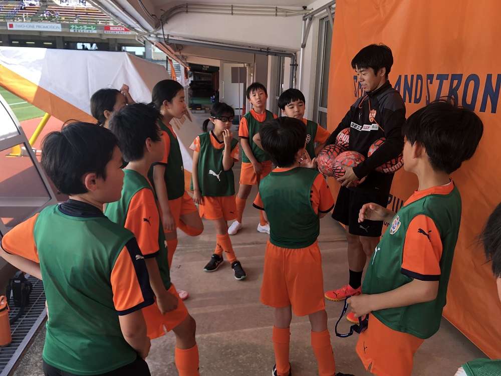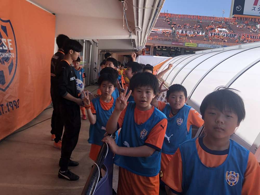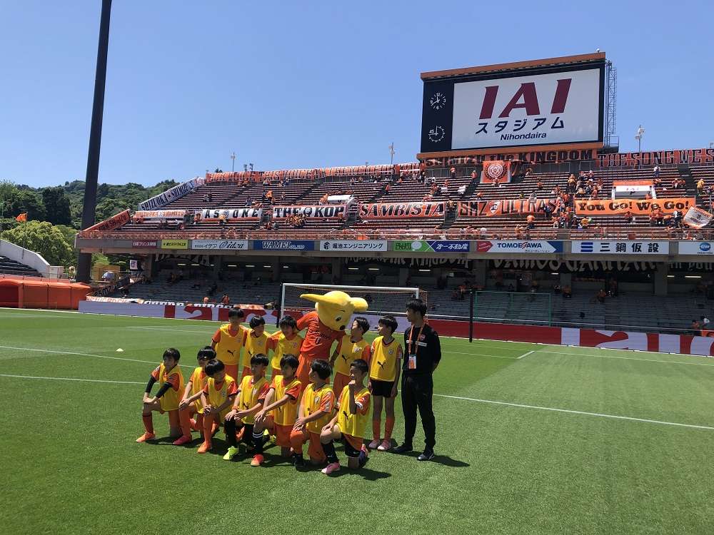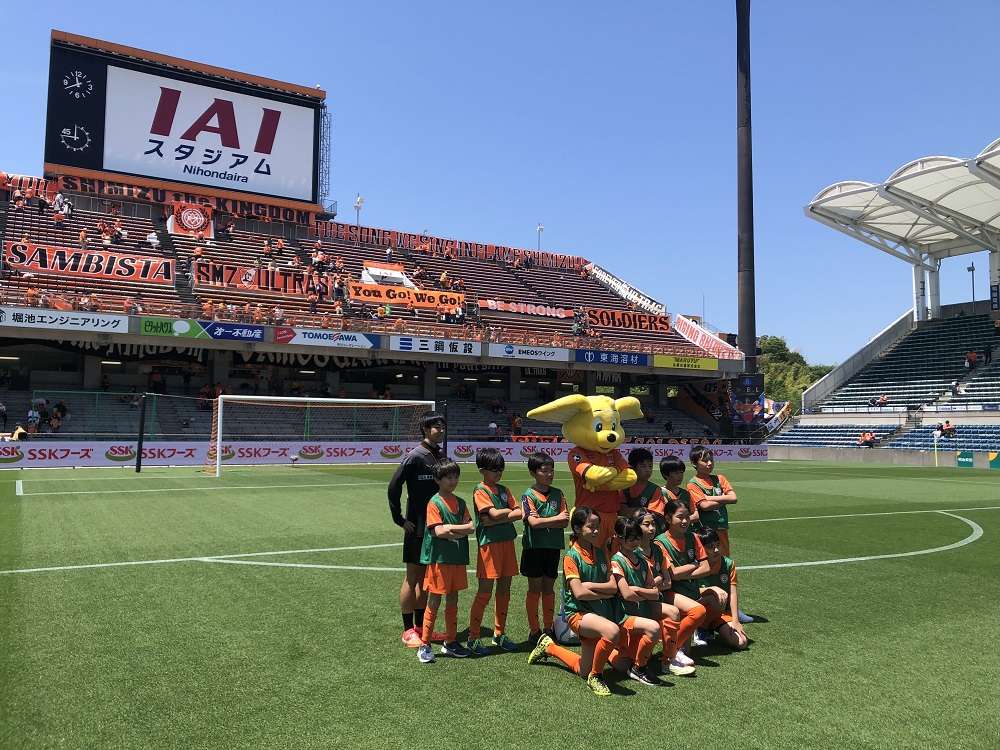 明治安田J2リーグ第15節 清水エスパルスvs 鹿児島ユナイテッドFC戦にて、5年生前座試合イベントを実施し46名のスクール生に参加いただきました。