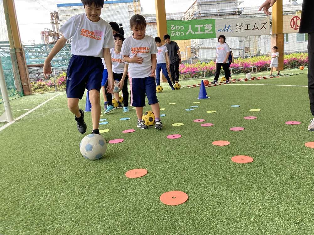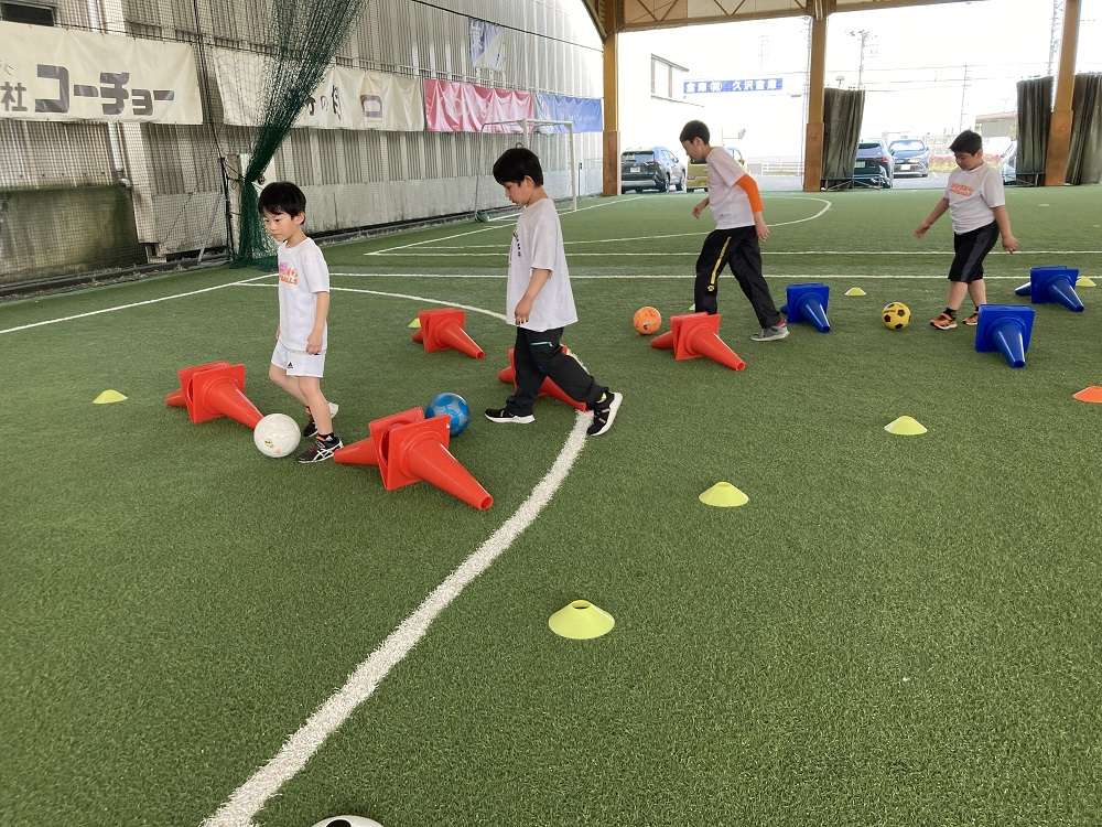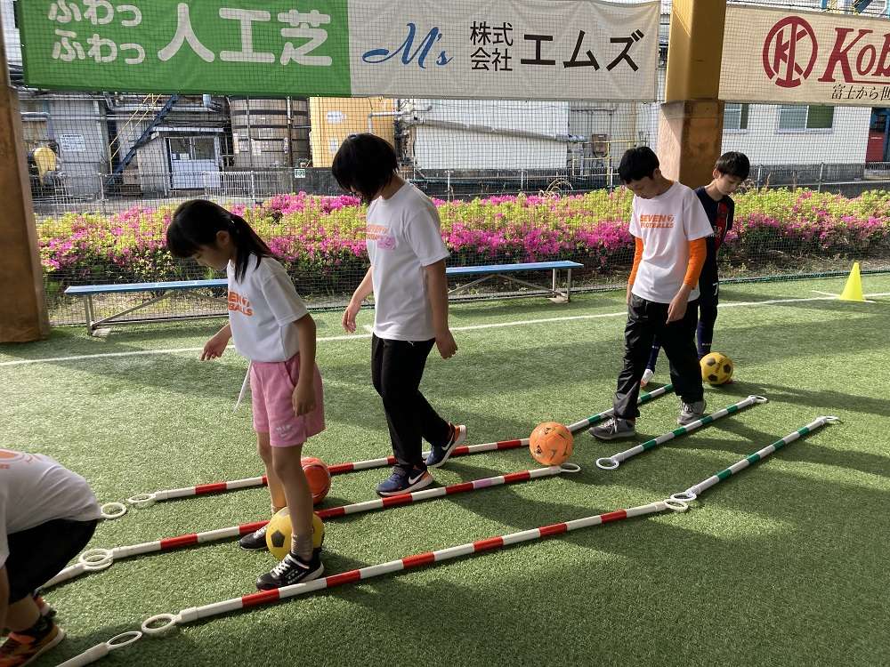 お気に入りのボールや好きな色のボールを使いドリブルサーキットトレーニング。