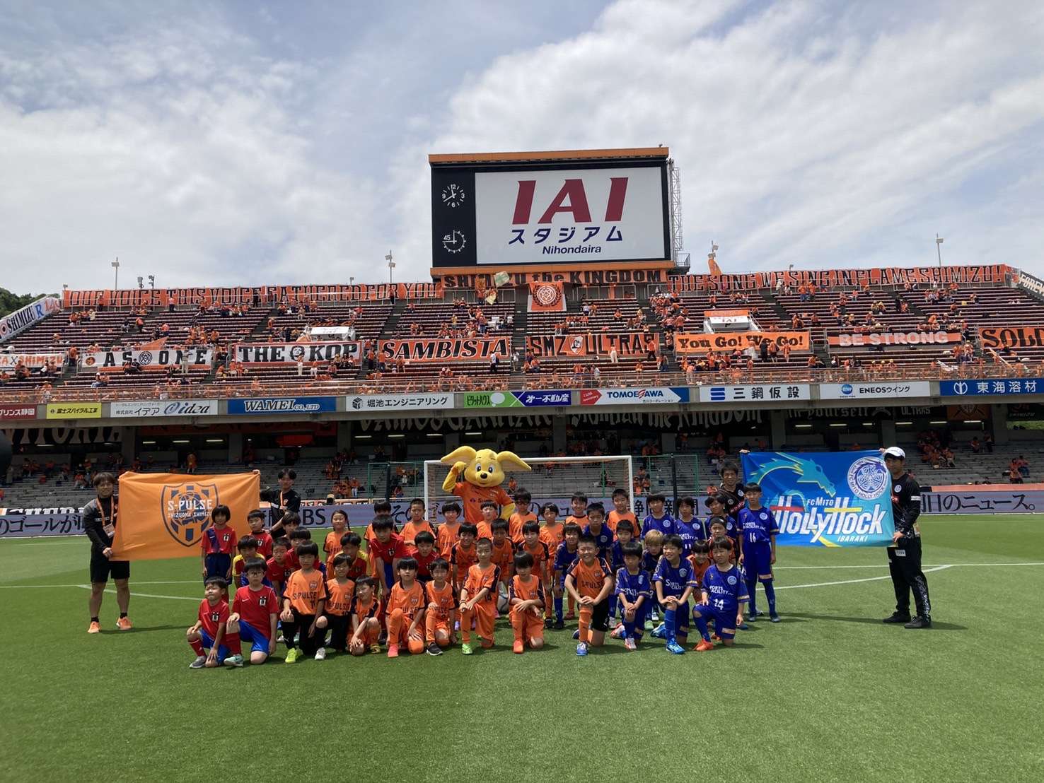 今回は駿東エリアのサッカースクール(駿東/伊豆/御殿場)に通う小学2年生・3年生を対象とし、25日はエスパルスドリームフィールド駿東にて水戸ホーリーホックスクール生・FACTサッカークラブ生との交流戦、26日はIAIスタジアム日本平にて前座交流戦・TOPチームのウォーミングアップ見学という内容。