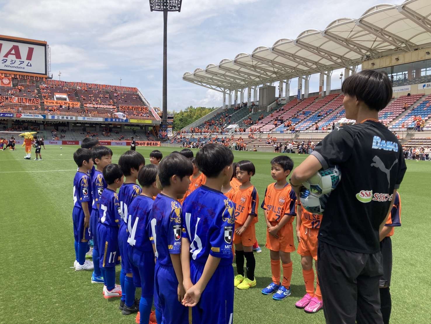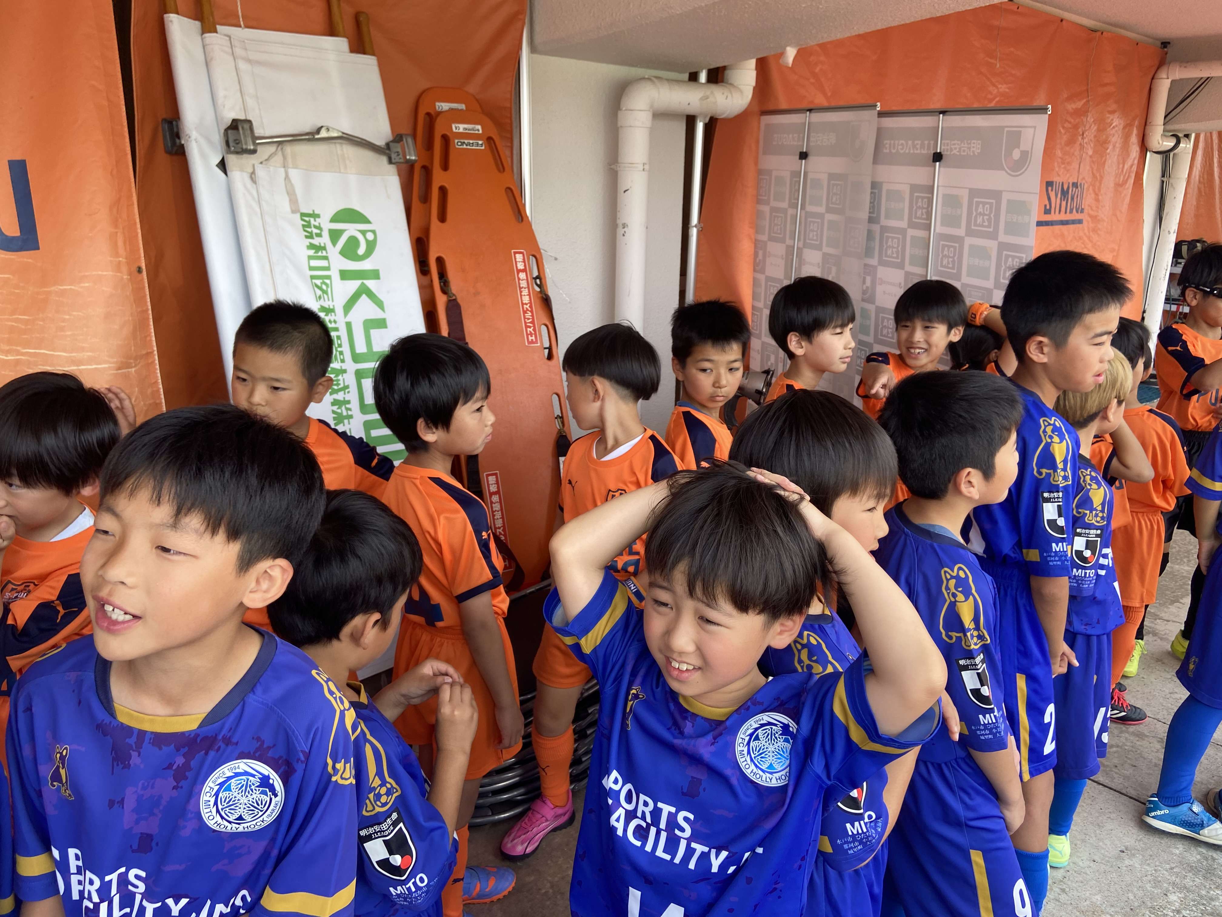 2日目は明治安田J2リーグ水戸ホーリーホック戦の前座を務めるということで1日目よりも若干緊張した様子のスクール生たち。