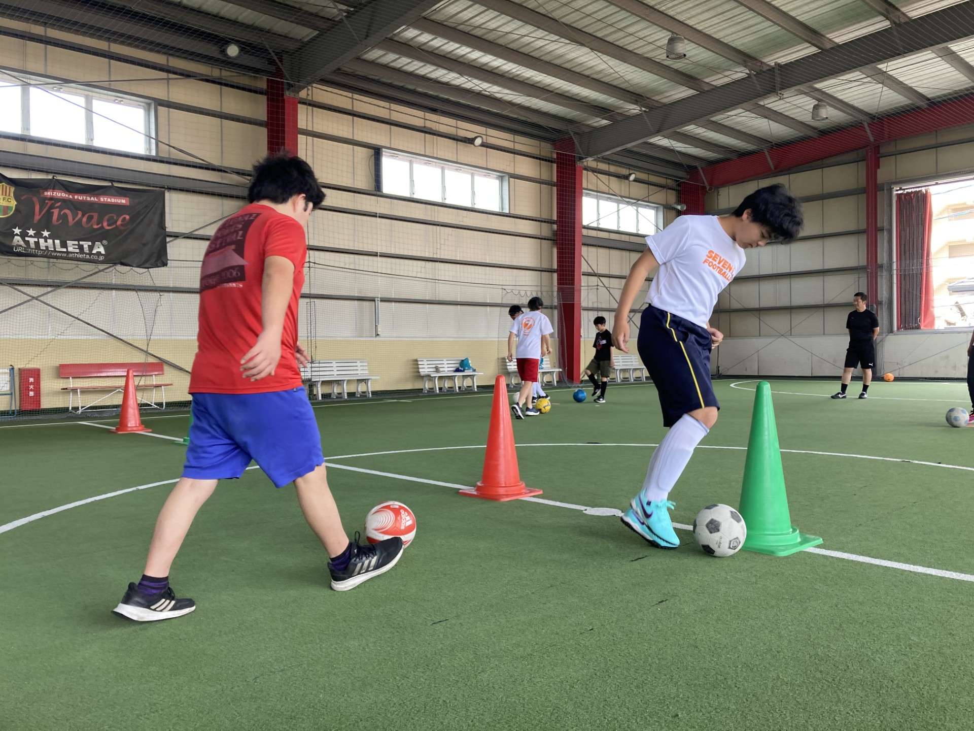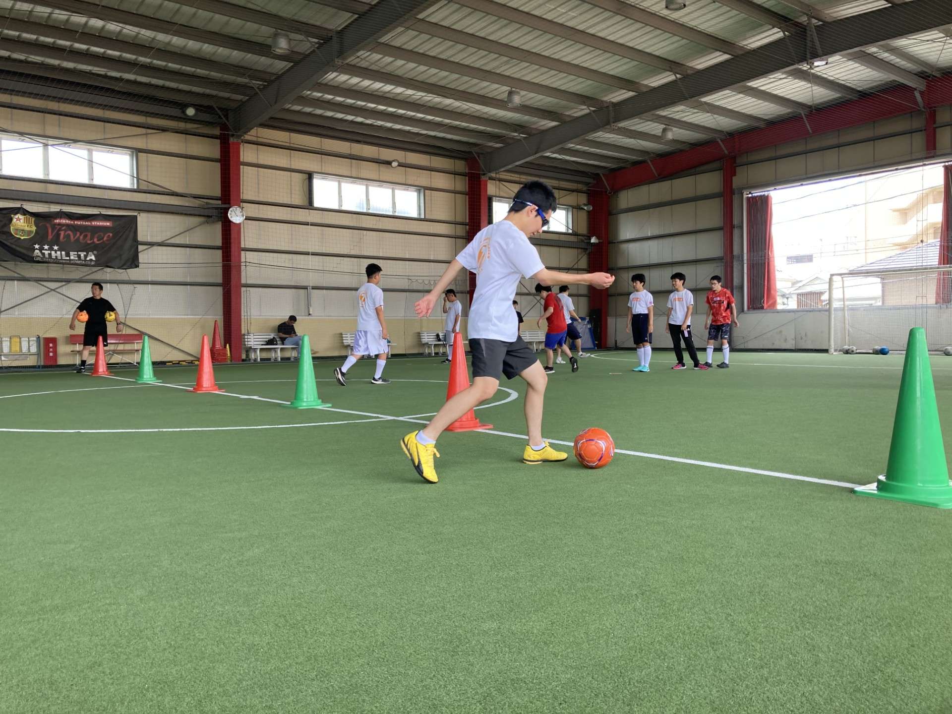 ドリブルやパスのトレーニングに真剣な表情で何度も取り組んでいました。