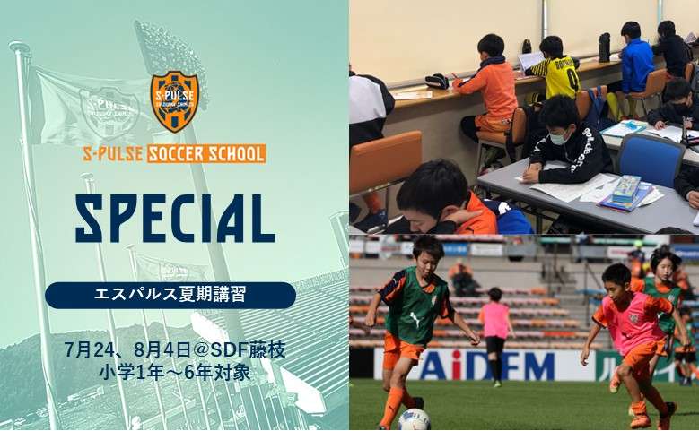 清水エスパルスは、7月24日(水)、8月4日(日)にエスパルスドリームフィールド藤枝にて、1年生から6年生を対象とした『エスパルス夏期講習@SDF藤枝~サッカーも勉強も頑張ろう!~』を開催いたします。