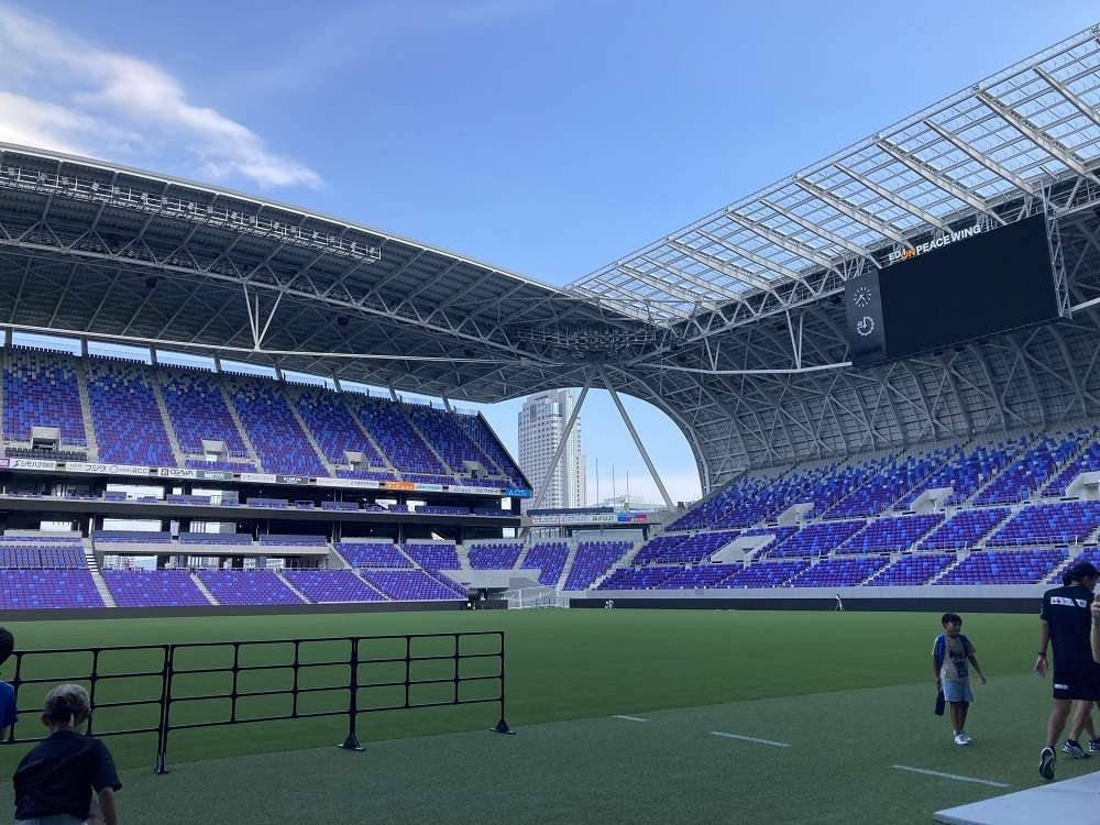 さて、サンフレッチェ広島さんとの交流戦後は、お待ちかねの広島が生んだ新スタジアム「エディオンピースウイング広島」の見学ツアー!