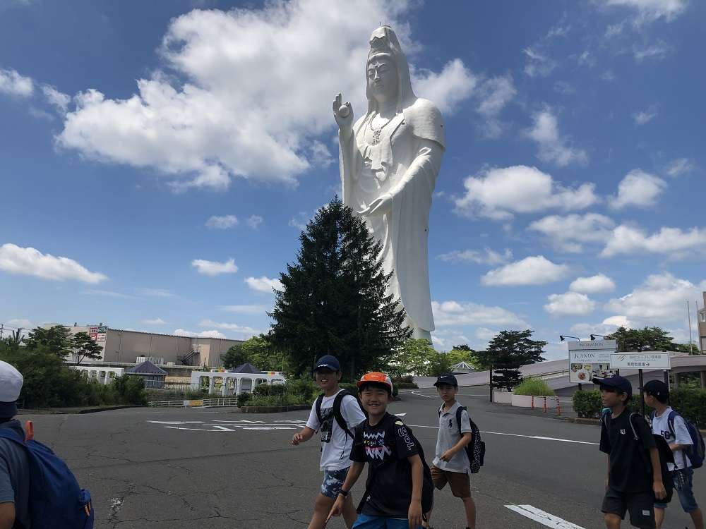 到着してホテルに向かいました。なんと、ホテルの隣には大きな観音様が立っています!みんなその大きさにびっくり!