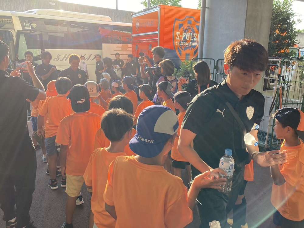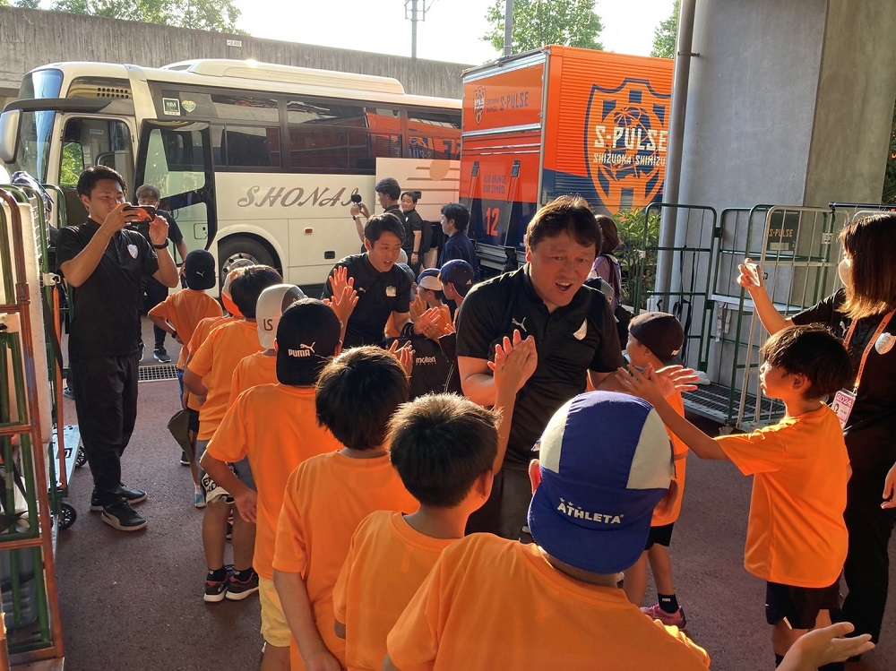 そして、なんと!エスパルスの選手がスタジアムに入る時に「ハイタッチ!」ができることになりました!ドキドキで選手達を待っていると・・・・