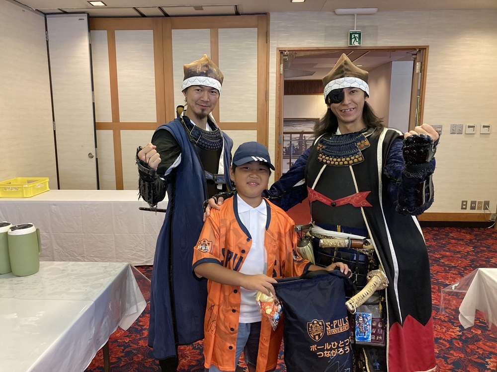 始めは驚いていましたが、政宗さんがやさしく話をしてくれると、みんなも色々と質問をし始めて、すっかり仲良しになりました。仲良くしていると、政宗さんの従妹の伊達成実さんも登場!なんど、成実さんはとってもサッカーに詳しいそうです!