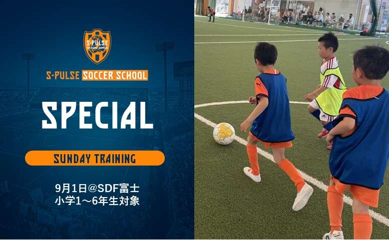 9月1日(日)にエスパルスドリームフィールド富士にて、小学1年生~6年生を対象に「Sundayトレーニング」を開催いたします。つきましては、参加者を募集いたしますので、以下の通りお知らせします。