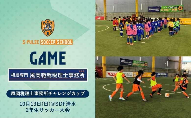 清水エスパルスは、クラブパートナーである風岡範哉税理士事務所様ご協力のもと、10月13日(日)にエスパルスドリームフィールド清水にて、小学2年生を対象とした『風岡税理士事務所チャレンジカップ 2年生サッカー大会 in SDF清水』を開催いたします。
