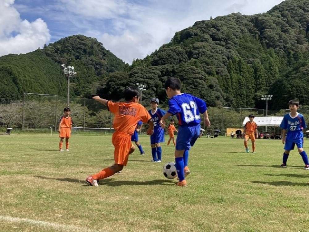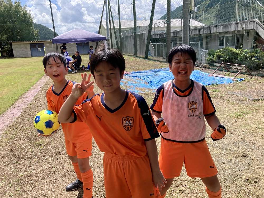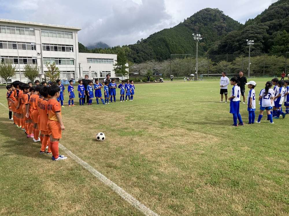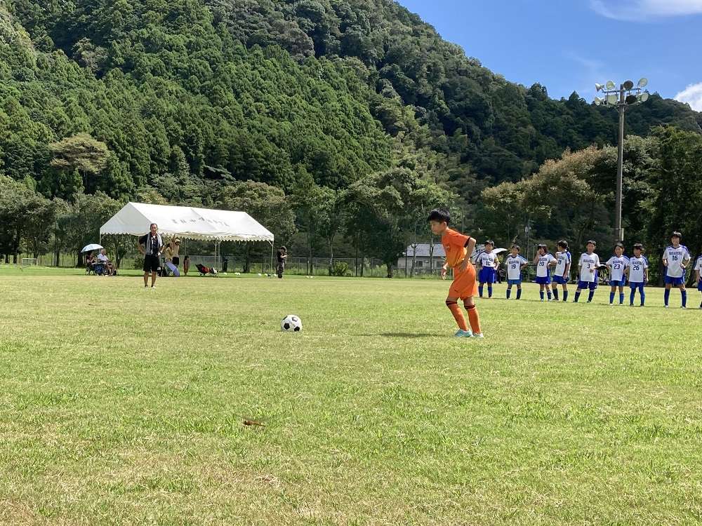 前日の雨で中止かと思われましたが、山に囲まれた気持ちの良い空気の中、天然芝の上でサッカーをすることが出来ました!