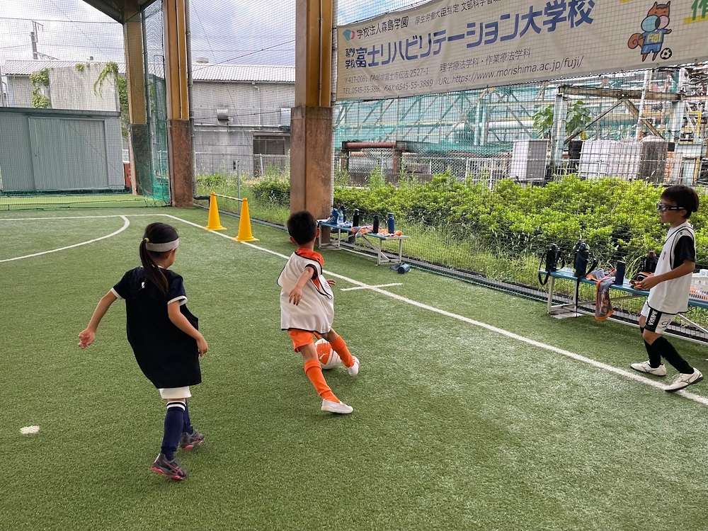次は、4ゴールゲーム。スペースを見つけ、「ゴール」を意識してプレーしていました。