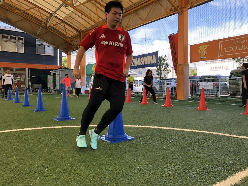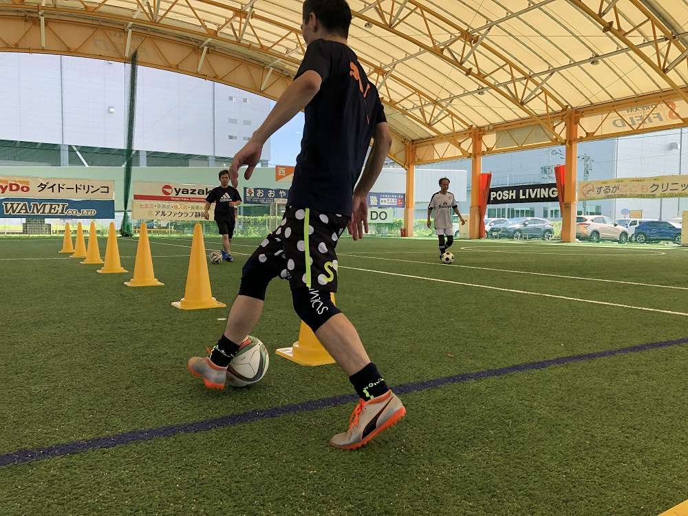 タッチの回数や強弱に変化を加えながら、リズムよくスムーズにコーンをかわしていきます!目線や姿勢も意識しながら徐々にレベルアップ!
