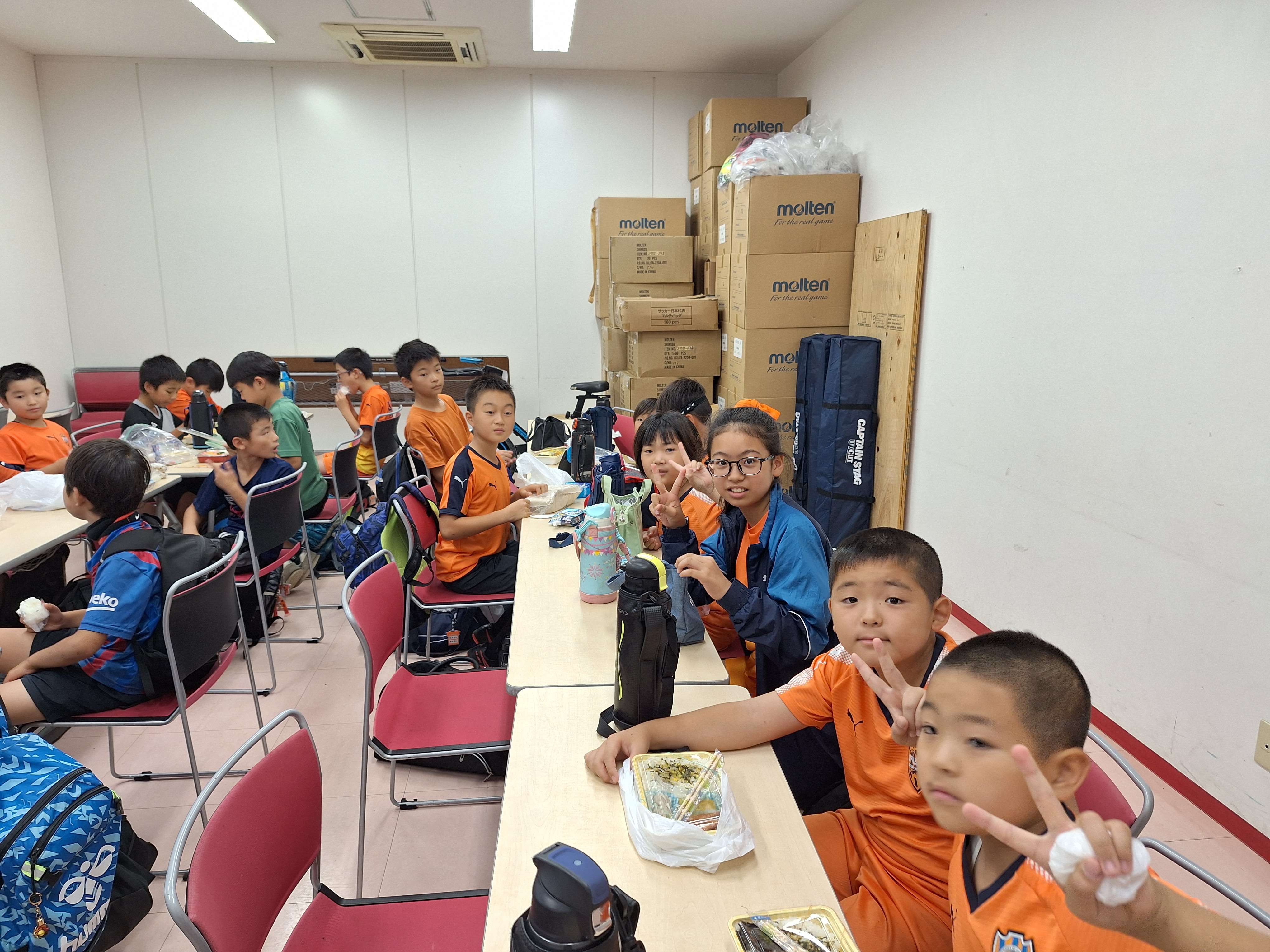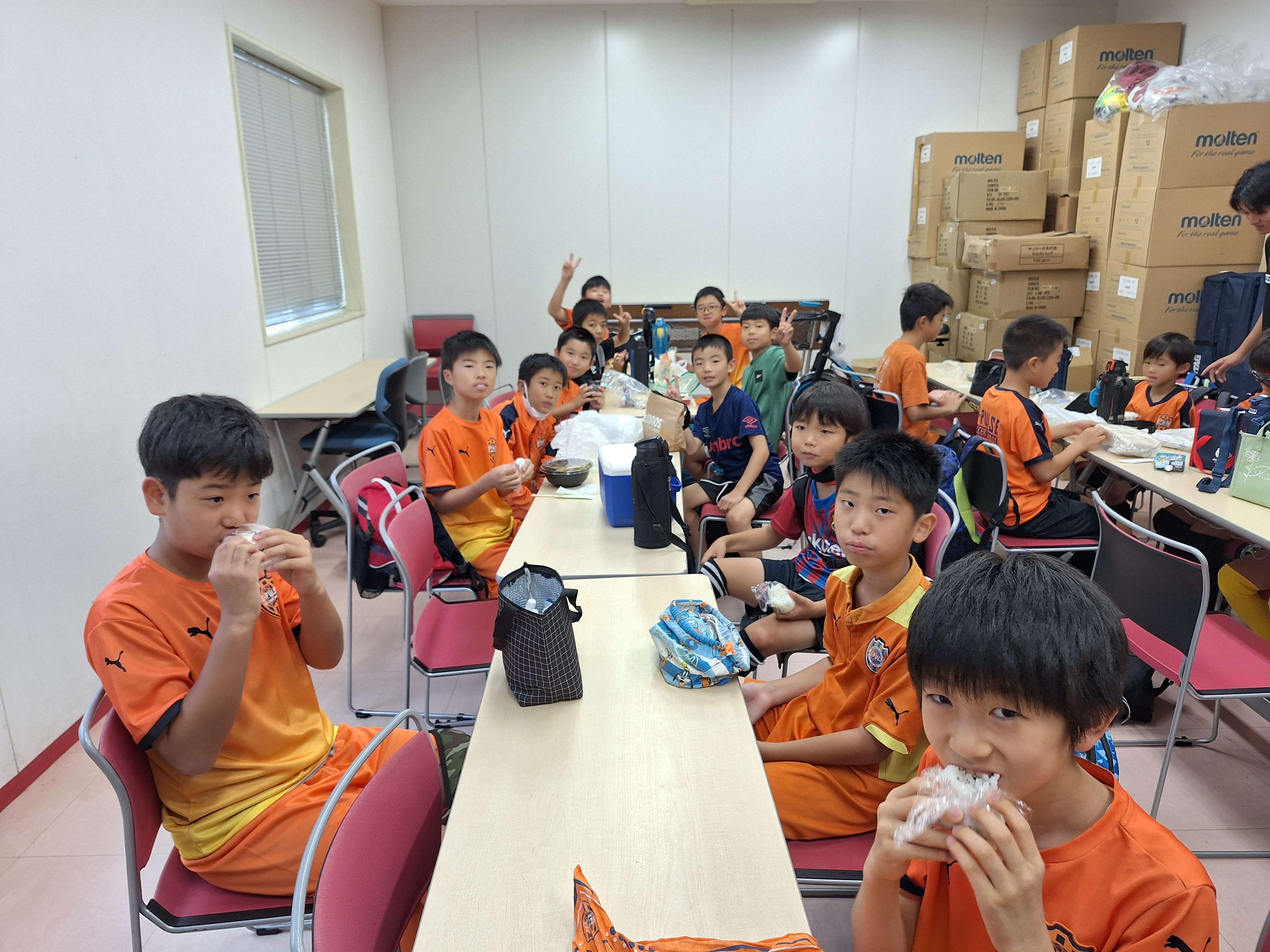 2日目、施設内のピッチで散歩、朝食へ。交流戦、TOPチームの応援に向けて少しずつ気持ちを高めていきます。