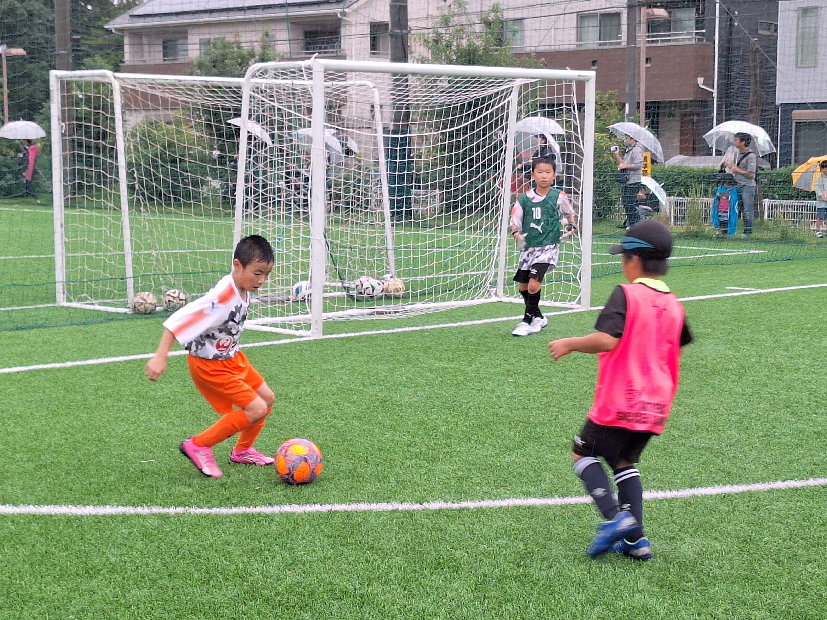 小雨で少し肌寒いコンディションではありましたが、ゴールを目指し、懸命にボールに食らいつきます。