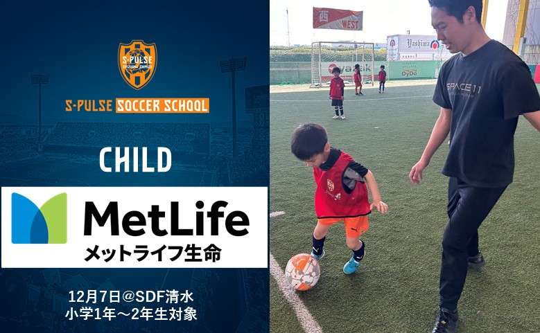 清水エスパルスは、メットライフ生命様ご協力のもと、12月7日(土)にエスパルスドリームフィールド清水にて、小学1年生~2年生を対象とした『エスパルスチャイルドサッカー教室&ライフプランセミナー』を開催いたします。