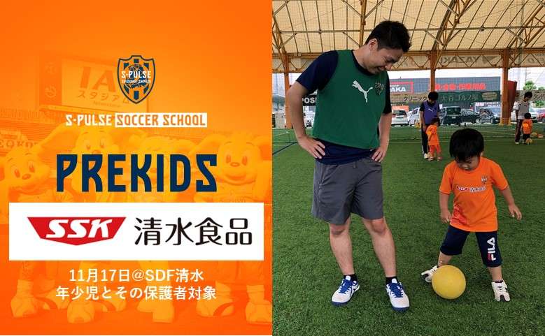 清水エスパルスは、11月17日(日)にエスパルスドリームフィールド清水にて、年少児のお子様1名と保護者1名の親子を対象とした『清水食品presentsプレキッズ 親子で一緒に年少さんサッカー教室』を開催いたします。