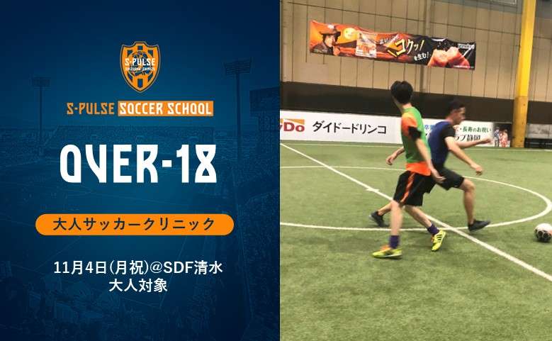 清水エスパルスは、11月4日(月・祝)エスパルスドリームフィールド清水において、18歳以上の(男性・女性)を対象にした大人対象エスパルスサッカークリニックを開催いたします。