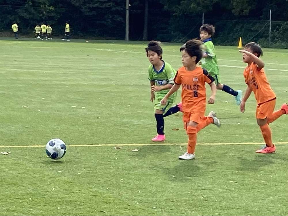1,2試合目はなかなかゴールに向かうこと、ボールに関わることができませんでしたが、試合を重ねていくうちに、子どもたち自身がどうやったら得点できるか、失点しないかを仲間と考えて次の試合に活かしたことで、一人ひとりのゴールに向かう、ボールを奪う意識が増え、一進一退の攻防を見ることができました。