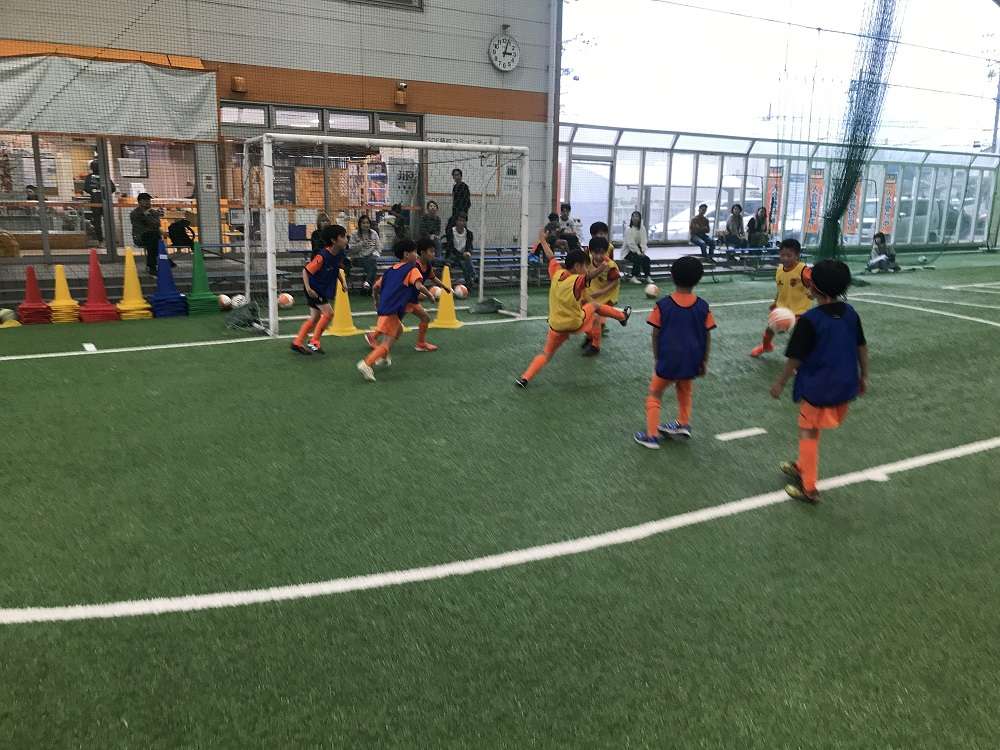 2vs2では、相手の場所を観て受ける位置や狙うゴール変えることの指導を受け、意識してパスを受けようとしていました!最後のゲームでは、ドリブルでの突破シュートが打てる位置でパスを受けゴールを目指す姿が見られました!
