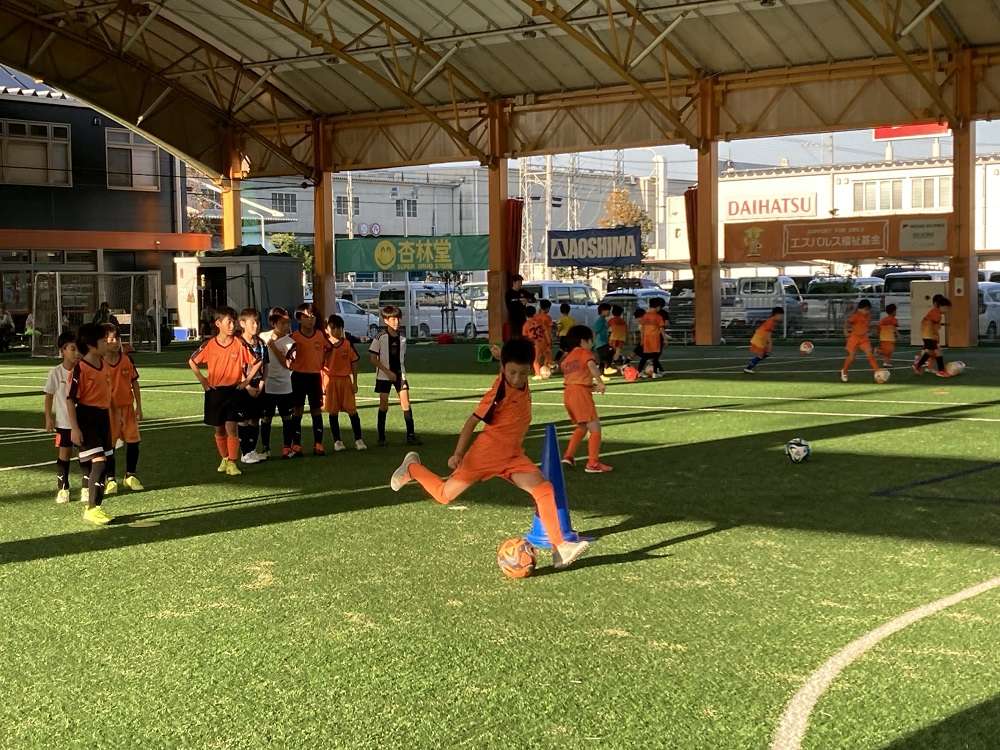 ドリブルからのシュートやトラップしてからのシュートなど様々なシチュエーションからゴールを奪う練習をしました。