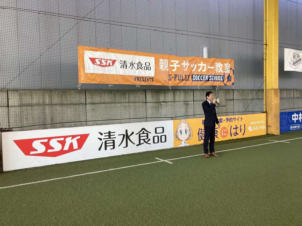 まずは、今回のサッカー教室の開催に当たり、ご協賛いただきました清水食品株式会社の佐野支店長様よりご挨拶をいただきました。本当にありがとうございます!